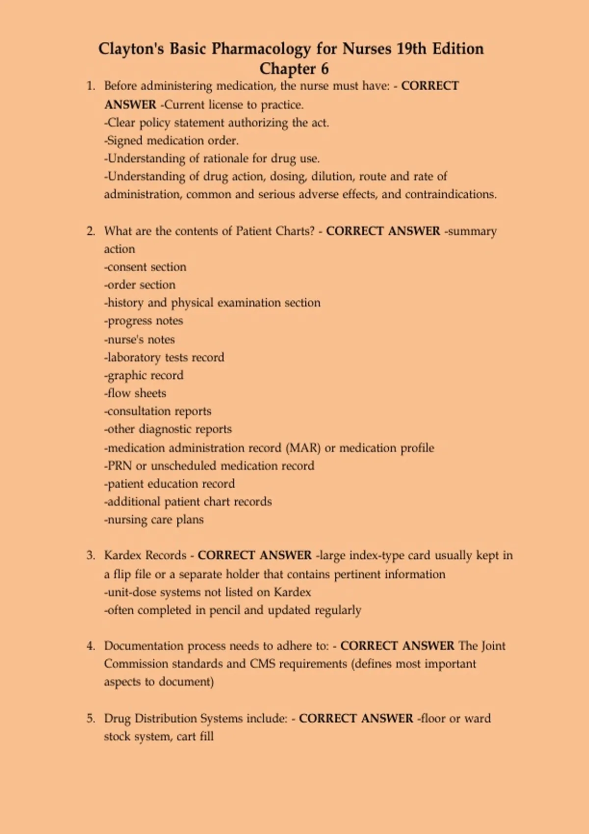 Clayton’s Basic Pharmacology for Nurses Chapter 1 to 19 Questions and Answers