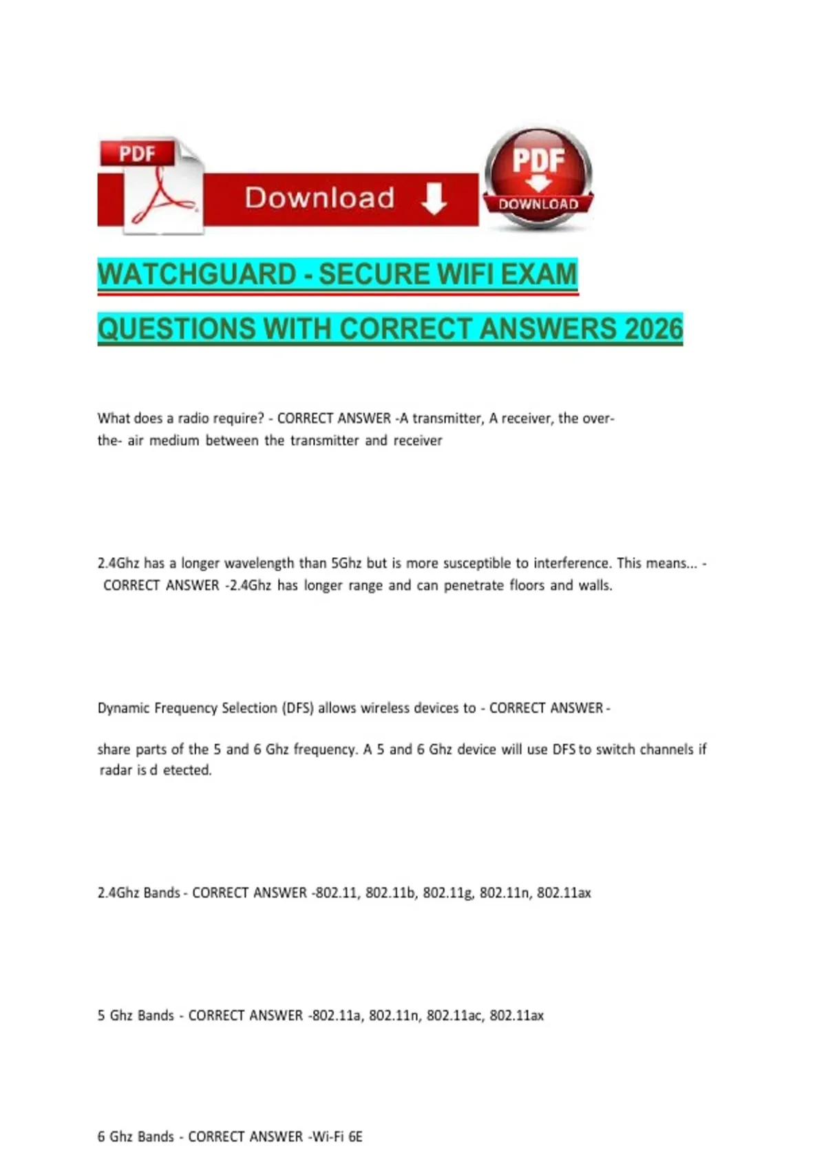 2.4Ghz IBandsZ- ICORRECT IANSWER I-802.11, I802.11b, I802.11g, I802.11n, I802.11ax