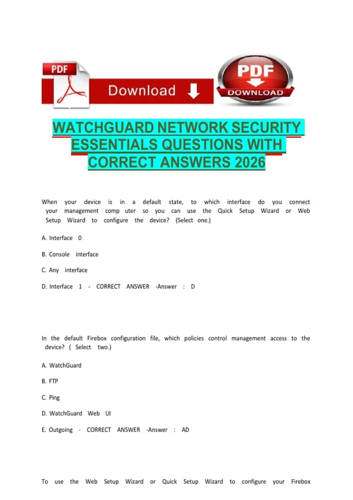 WATCHGUARD NETWORK SECURITY ESSENTIALS QUESTIONS WITH CORRECT ANSWERS 2026