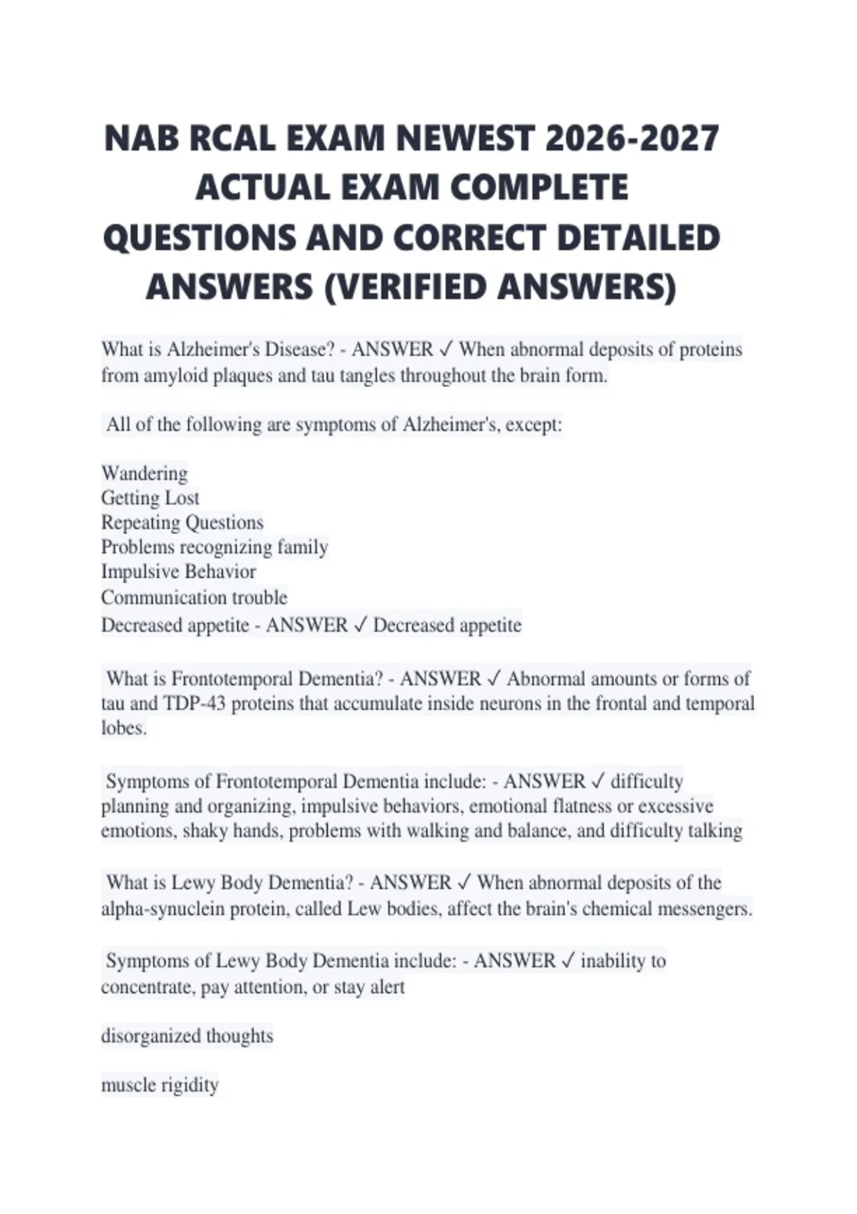 Symptoms of Lewy Body Dementia include: - ANSWER ✓ inability to