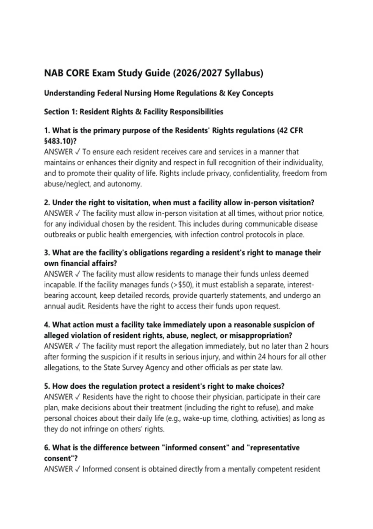 Section 1: Resident Rights & Facility Responsibilities