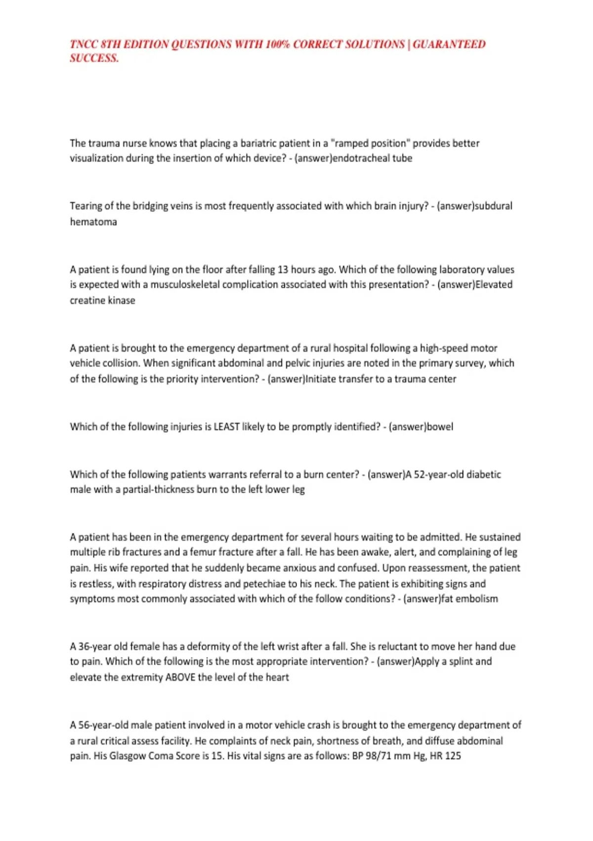 , TNCC 8TH EDITION QUESTIONS WITH 100% CORRECT SOLUTIONS | GUARANTEED