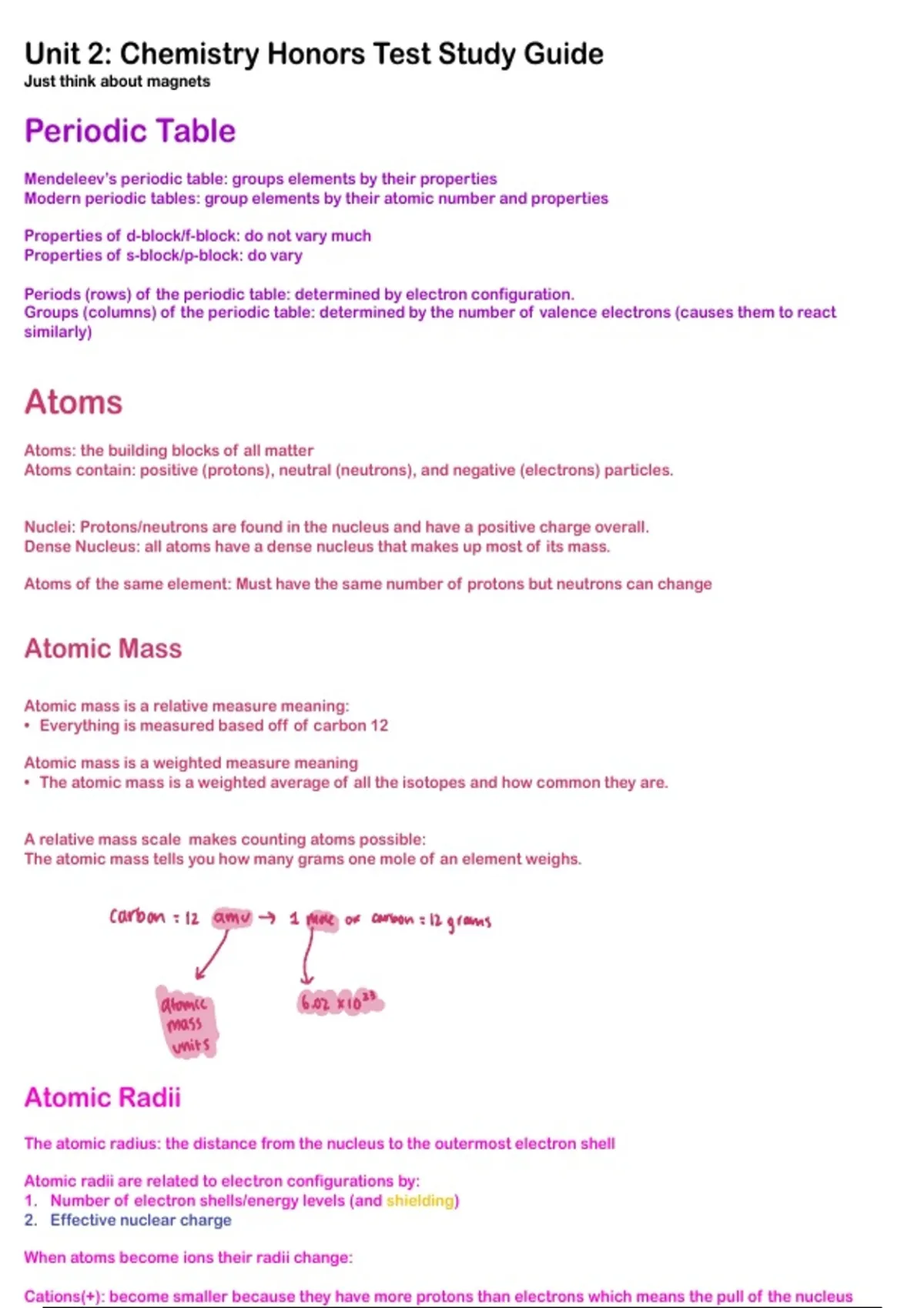 Learn in depth about chemistry honors topics such as periodic table, atoms, atomic mass, electronegativity, electrons, Bohr models, electron configurations and more! Color coded with models