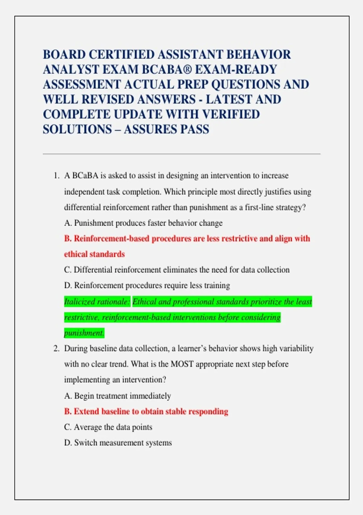 1. A BCaBA is asked to assist in designing an intervention to increase