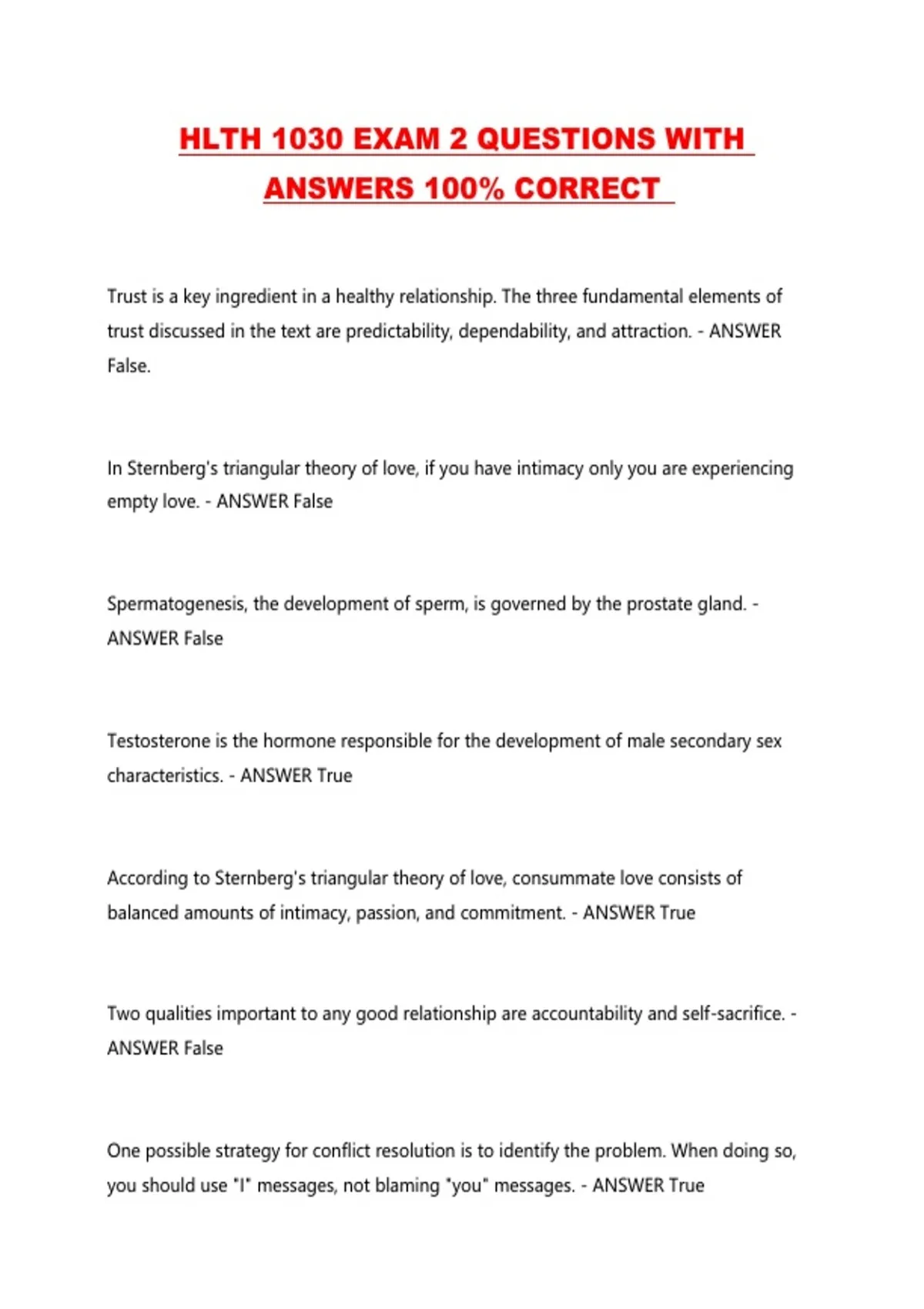 HLTH 1030 EXAM 2 QUESTIONS WITH ANSWERS 100% CORRECT ...