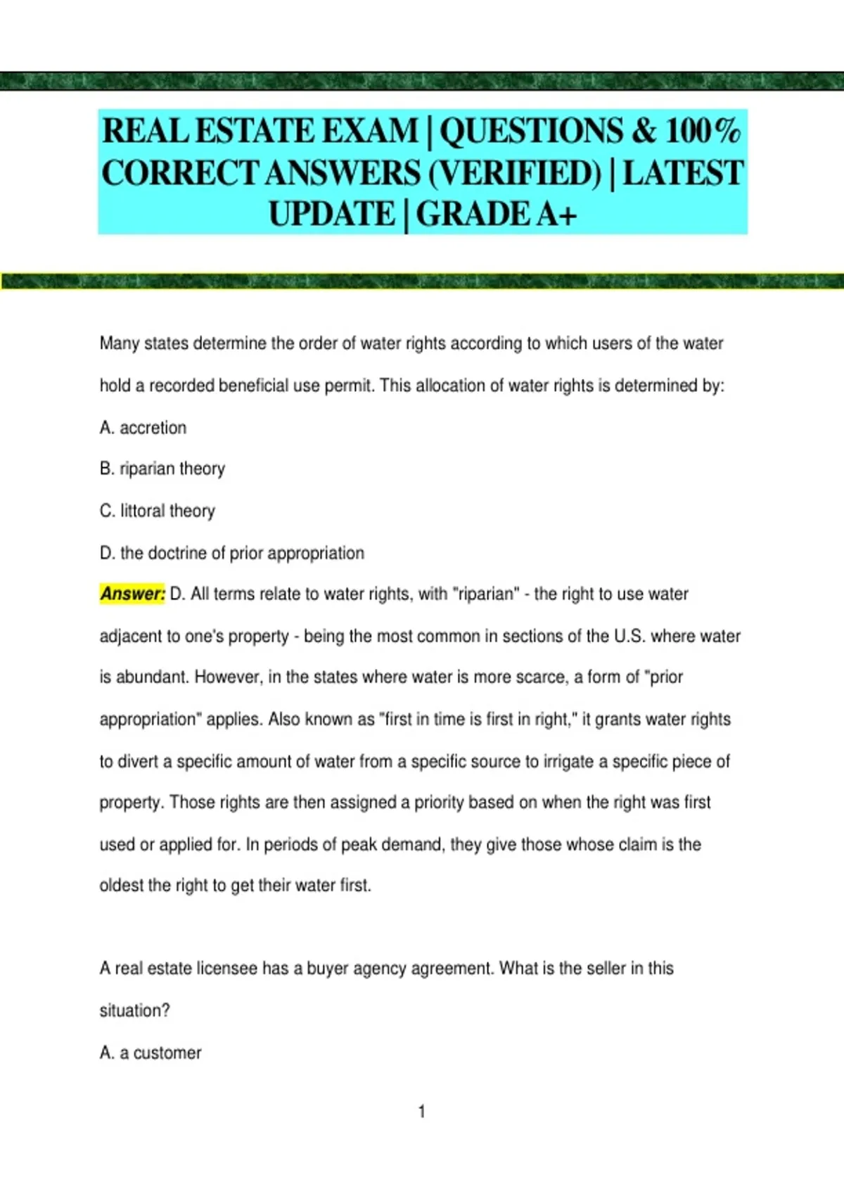Answer: D. All terms relate to water rights, with "riparian" - the right to use water