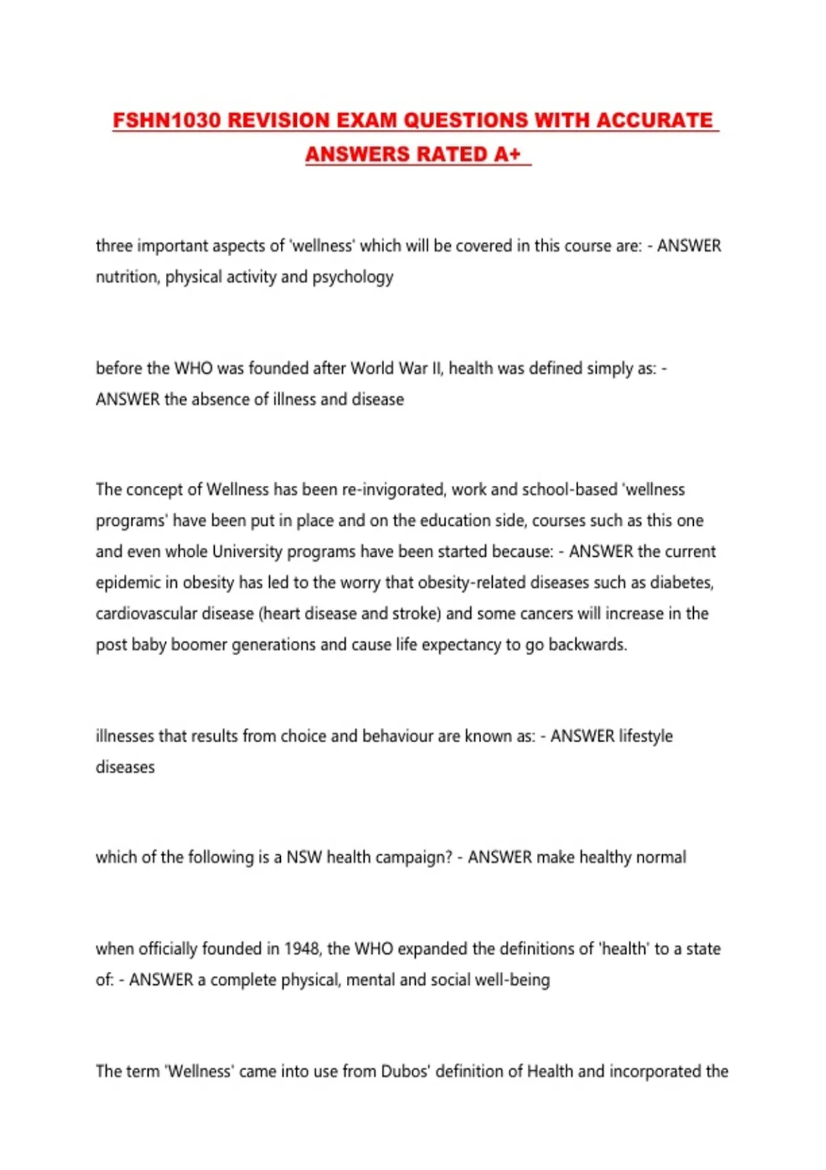 FSHN1030 REVISION EXAM QUESTIONS WITH ACCURATE ANSWERS RATED A+ ...