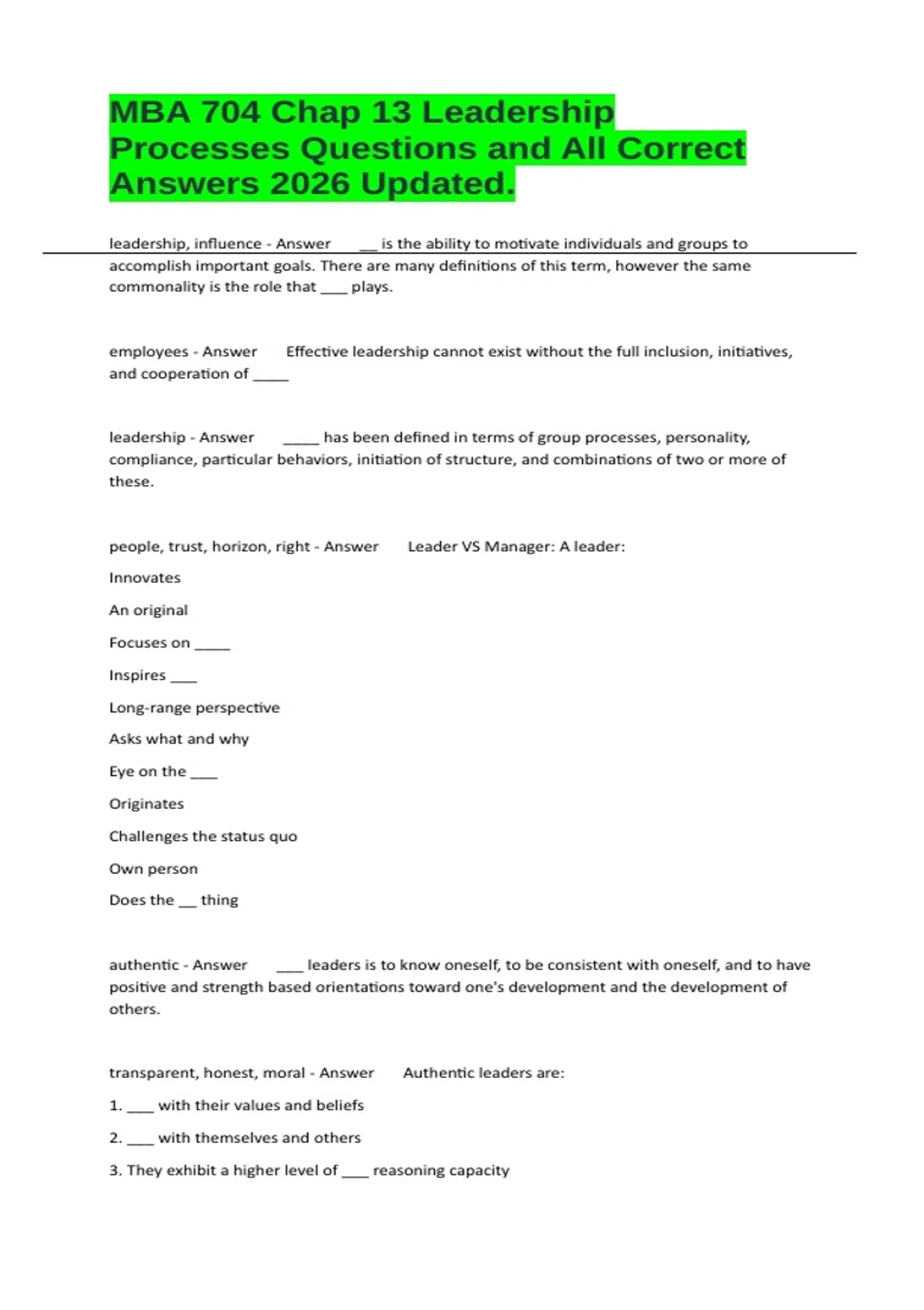 leadership - Answer ____ has been defined in terms of group processes, personality,
