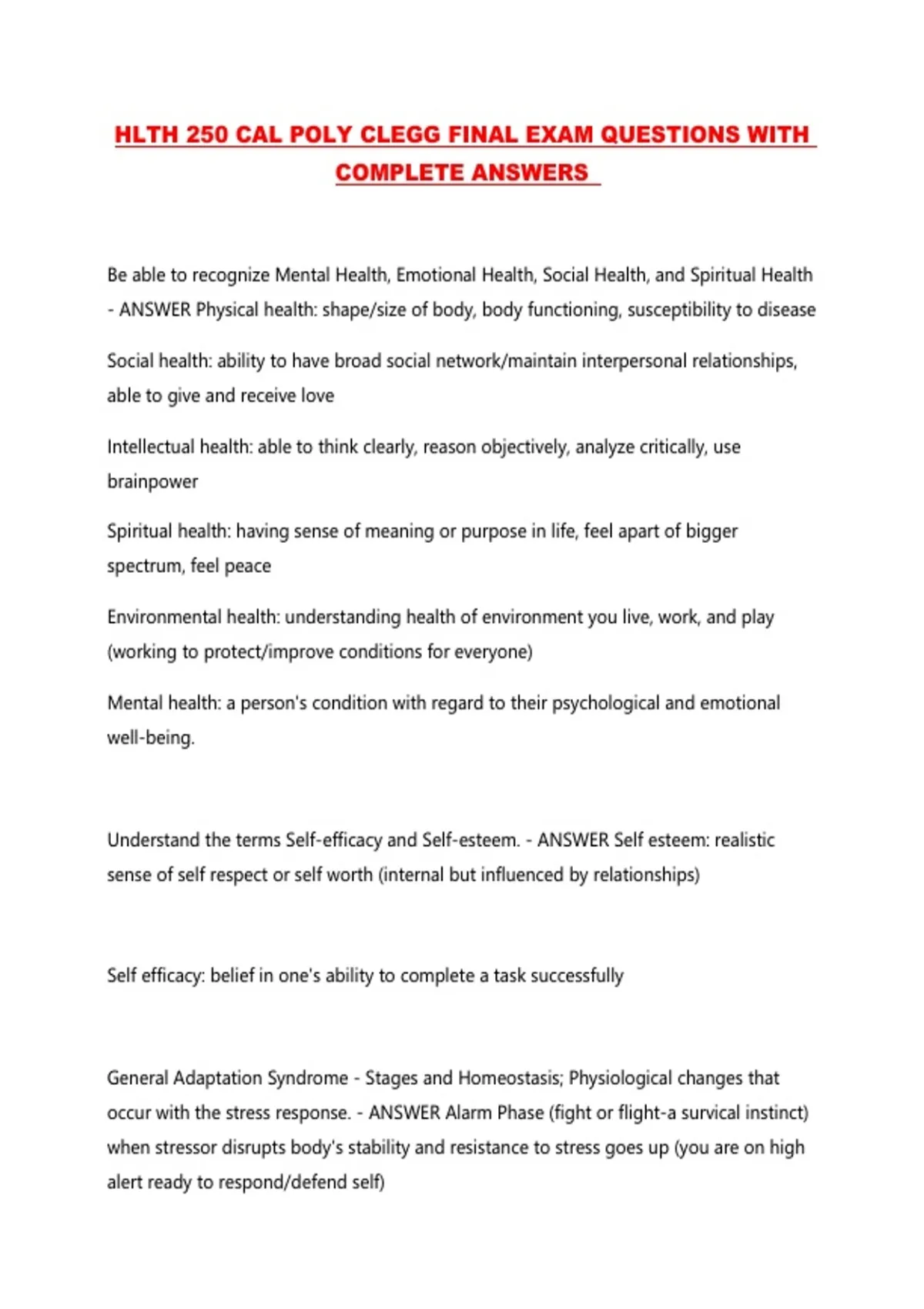 HLTH 250 CAL POLY CLEGG FINAL EXAM QUESTIONS WITH
