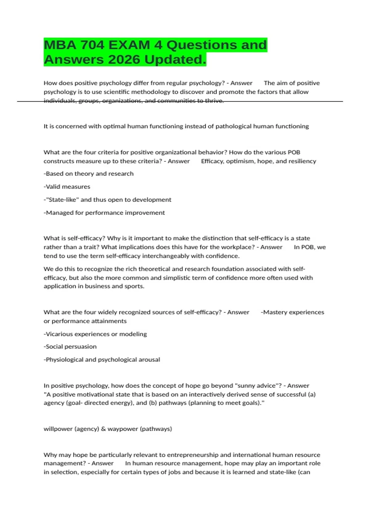 What are the four widely recognized sources of self-efficacy? - Answer -Mastery experiences