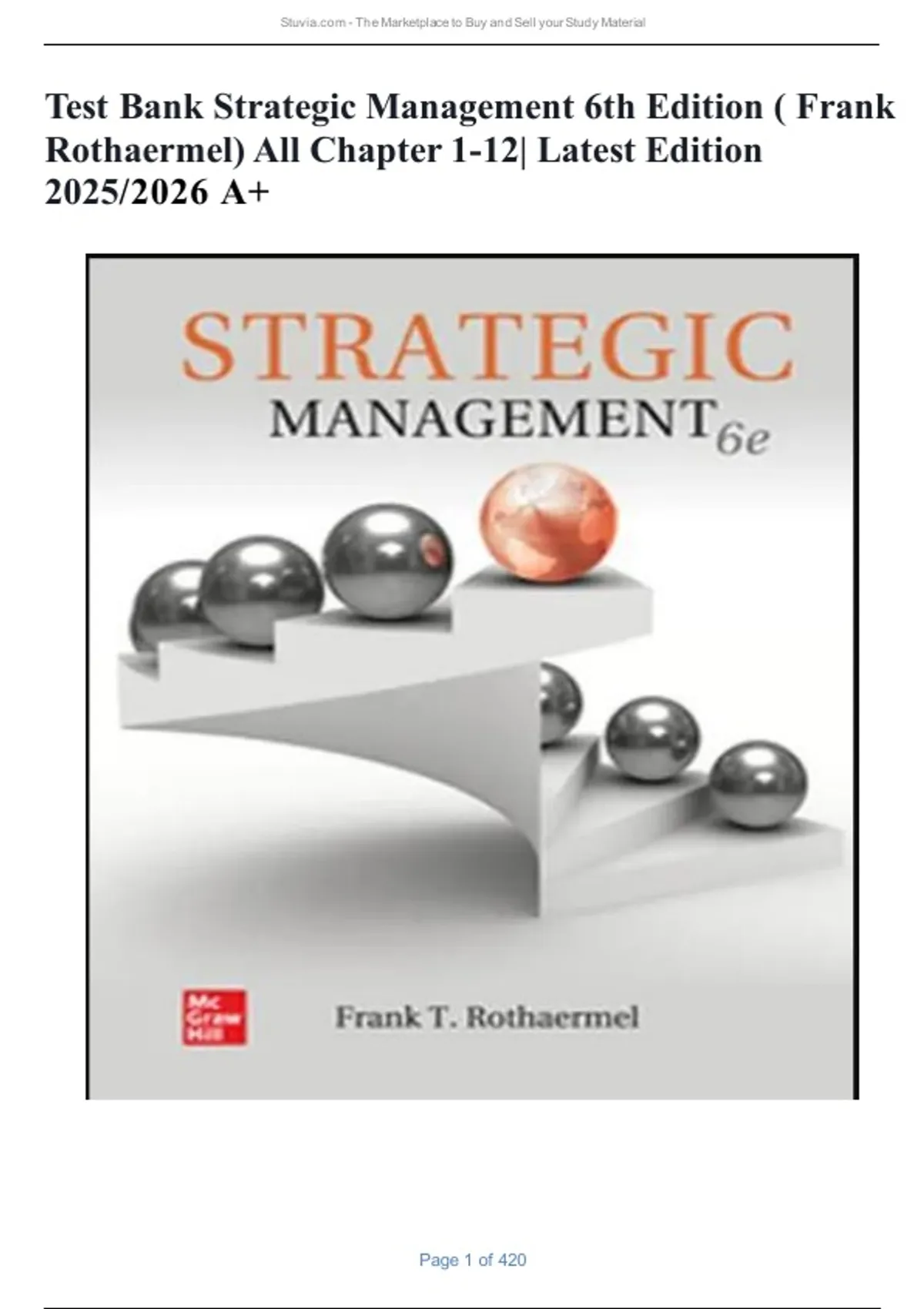 Test Bank Strategic Management 6th Edition ( Frank Rothaermel) All Chapter 1-12| Latest Edition 2026