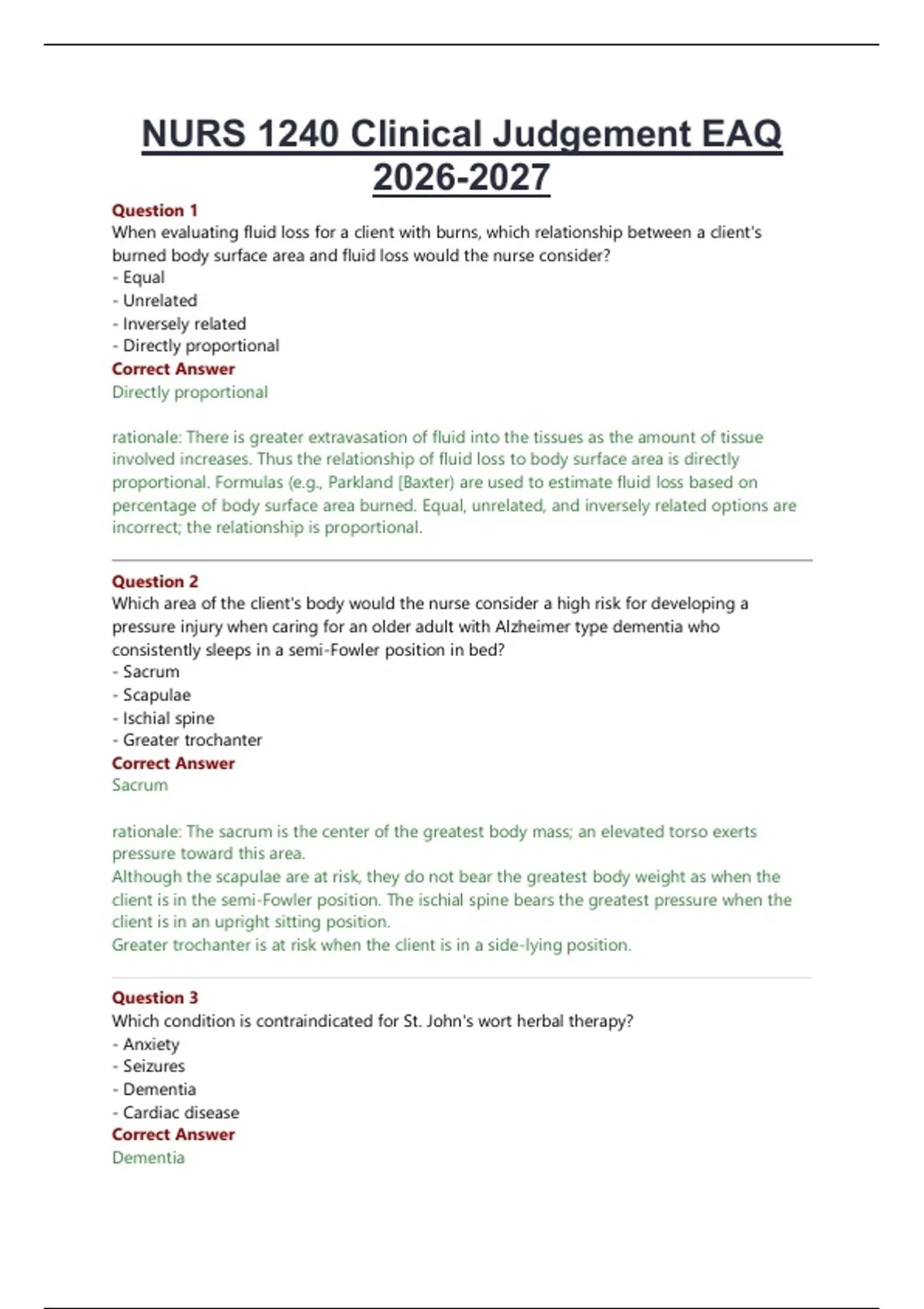 percentage of body surface area burned. Equal, unrelated, and inversely related options are