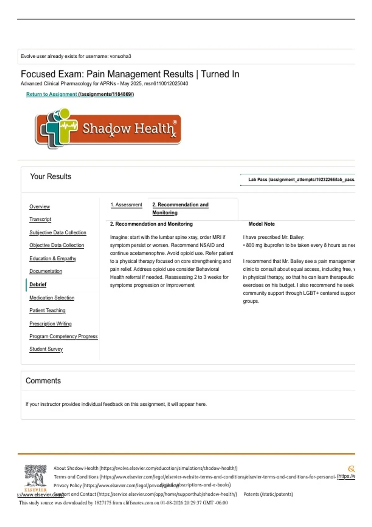6/9/25, 9:23 PM | Shadow Health® │ Digital Clinical Experiences™ from Elsevier
