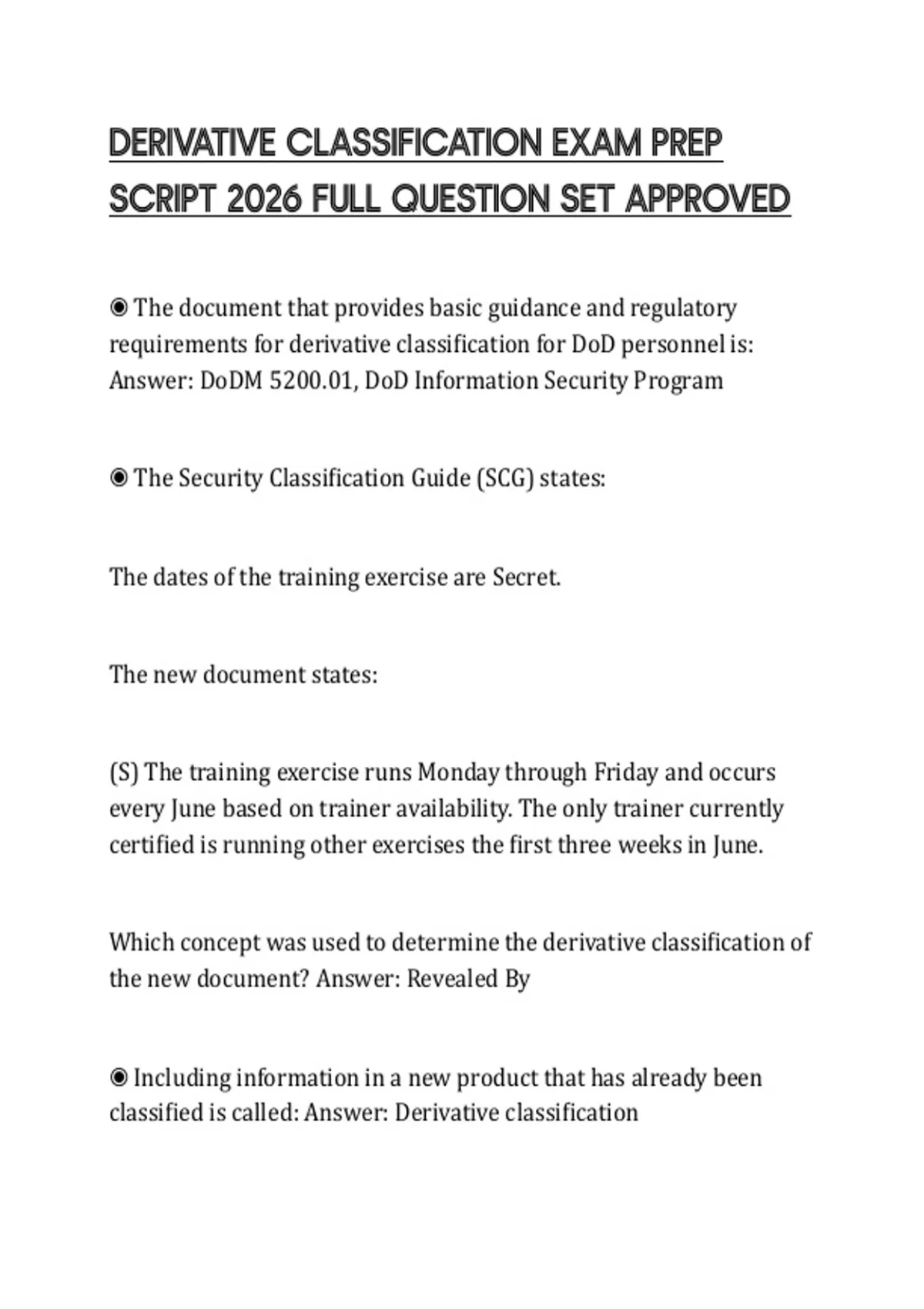 ,◉ A Security Classification Guide (SCG) is: Answer: A collection of