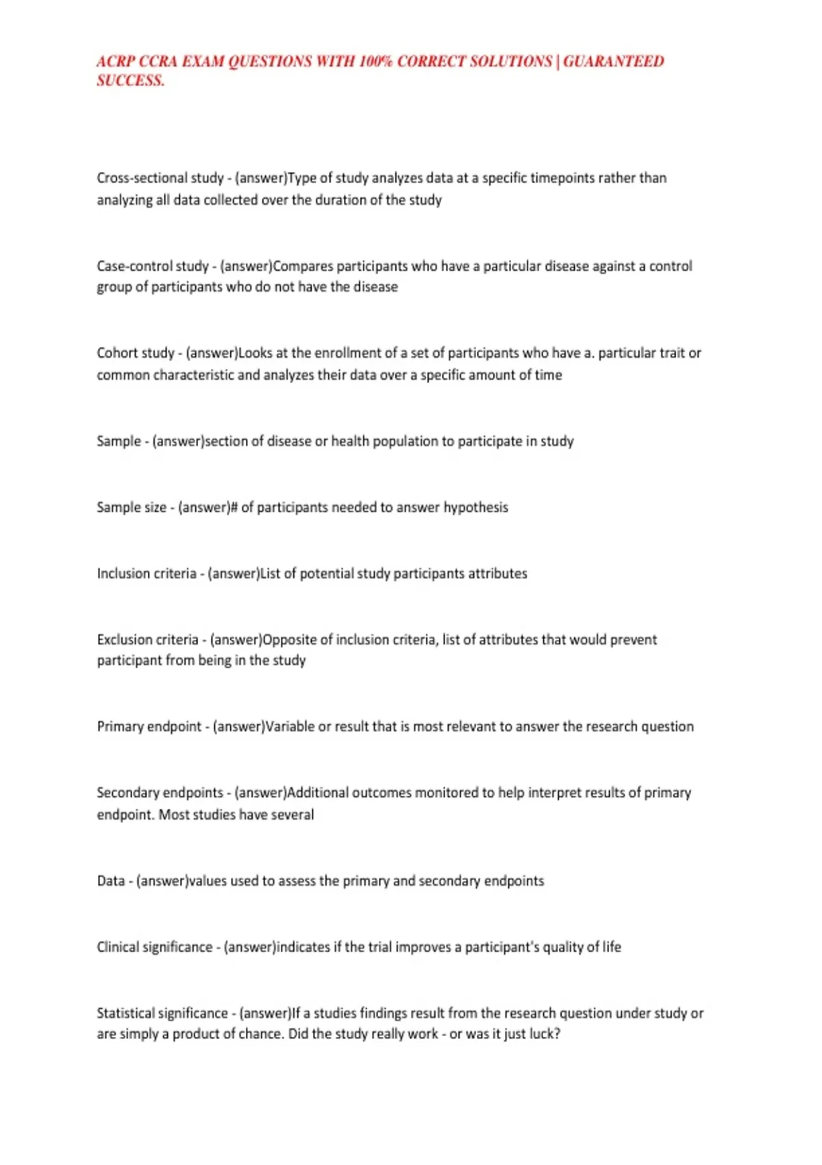 ACRP CCRA EXAM QUESTIONS WITH 100% CORRECT SOLUTIONS | GUARANTEED SUCCESS.