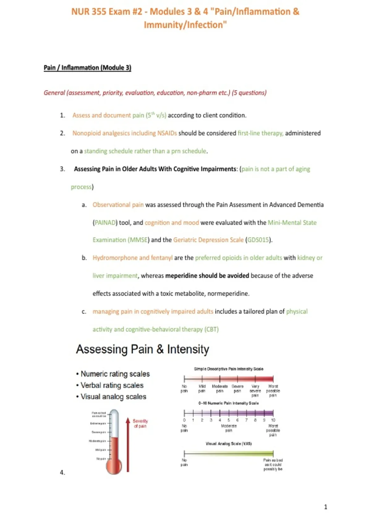, NUR 355 Exam #2 - Modules 3 & 4 "Pain/Inflamma�on &