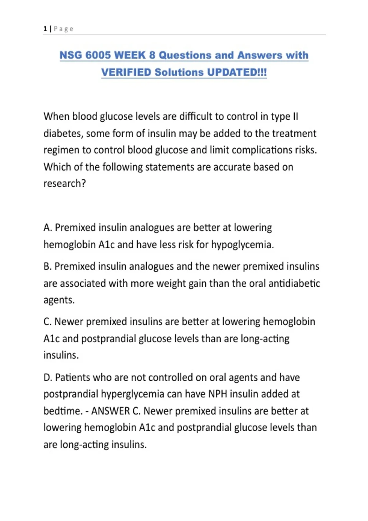 bedtime. - ANSWER C. Newer premixed insulins are better at