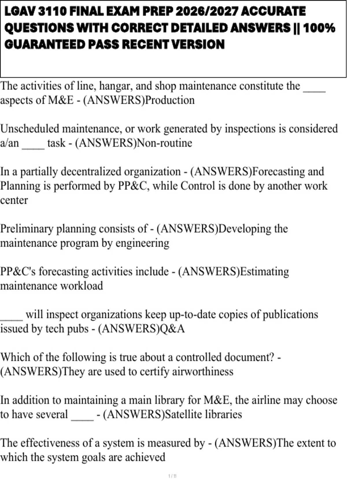 LGAV 3110 FINAL EXAM PREP 2026/2027 ACCURATE