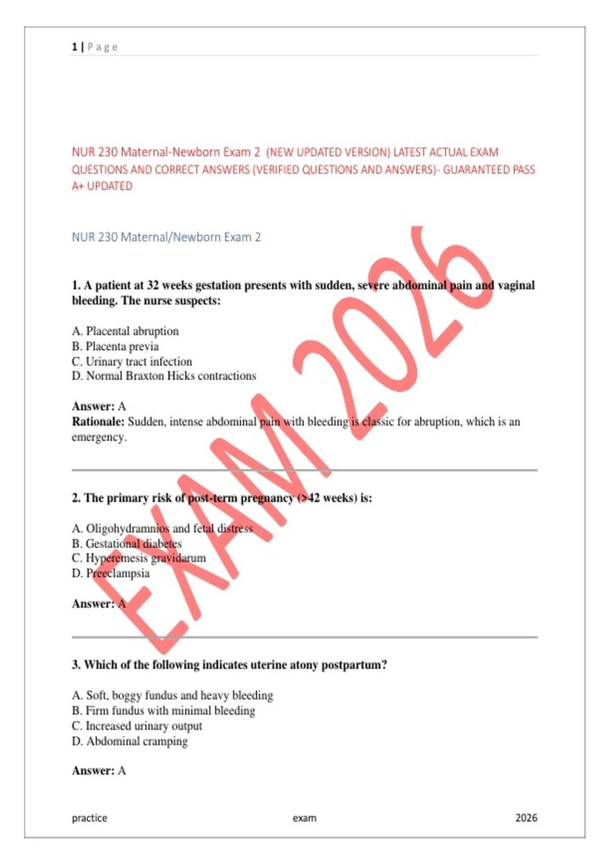 NUR 230 Maternal-Newborn Exam 2 (NEW UPDATED VERSION) LATEST ACTUAL EXAM