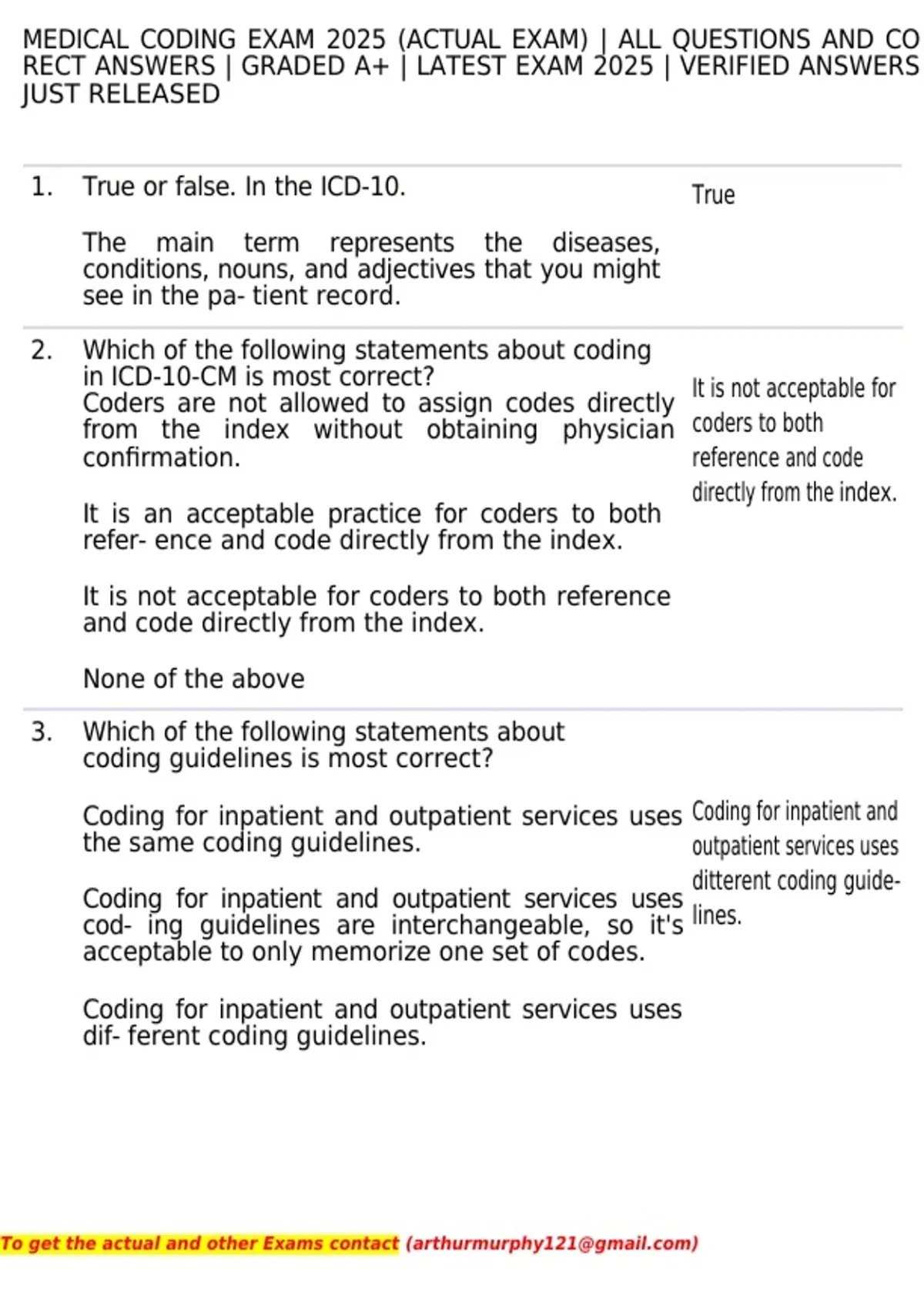, MEDICAL CODING EXAM 2025 (ACTUAL EXAM) | ALL QUESTIONS AND