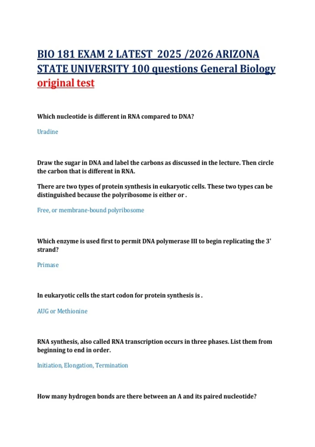 BIO 181 EXAM 2 LATEST 2025 /2026 ARIZONA