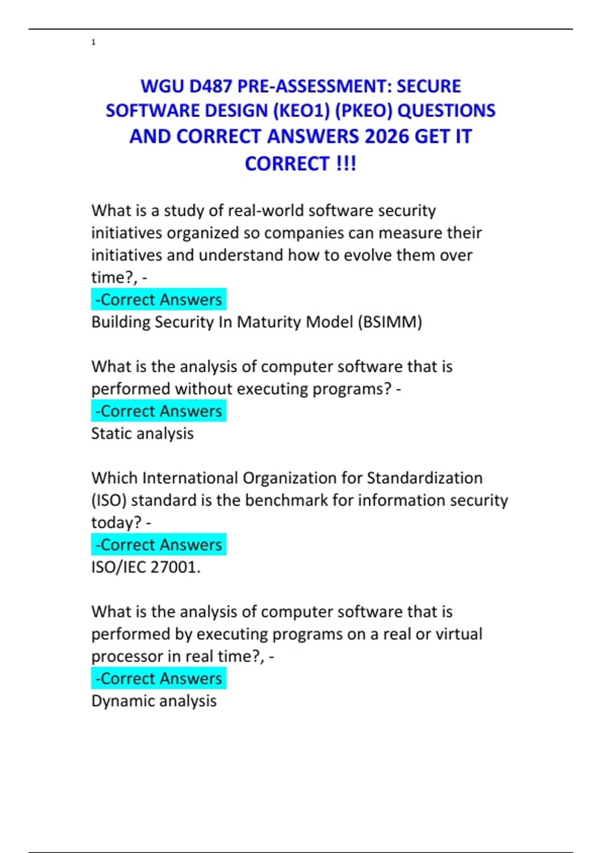 WGU D487 PRE-ASSESSMENT: SECURE SOFTWARE DESIGN (KEO1) (PKEO) QUESTIONS AND CORRECT ANSWERS 2026 GET IT CORRECT !!!