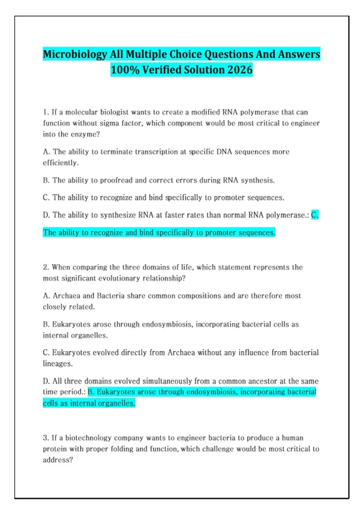 Microbiology All Multiple Choice Questions And Answers 100% Verified Solution 2026