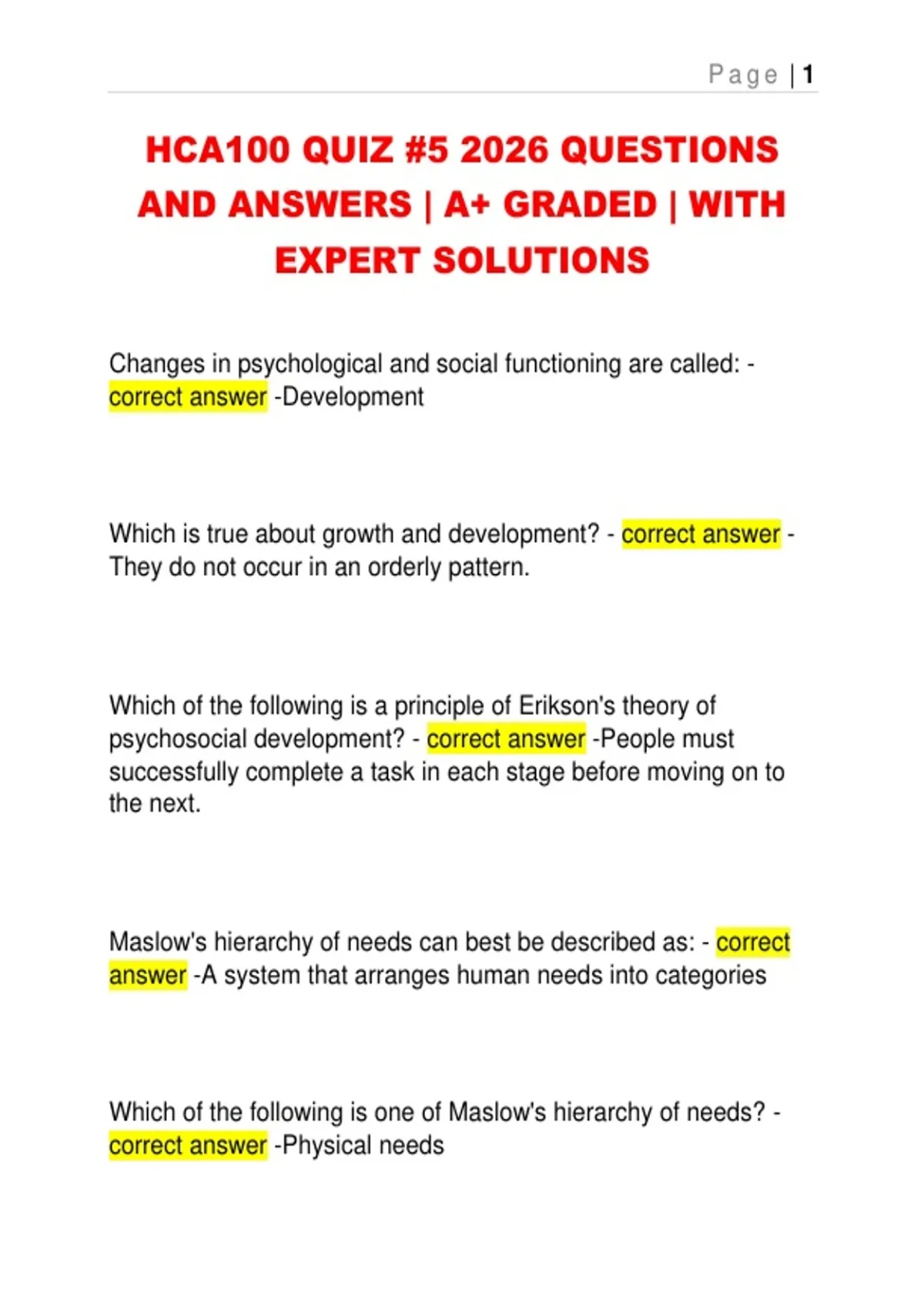 HCA100 QUIZ #5 2026 QUESTIONS