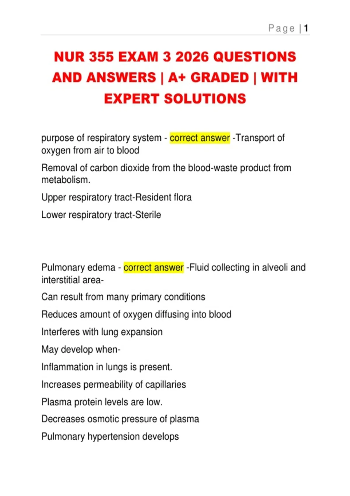 Pulmonary edema - correct answer -Fluid collecting in alveoli and