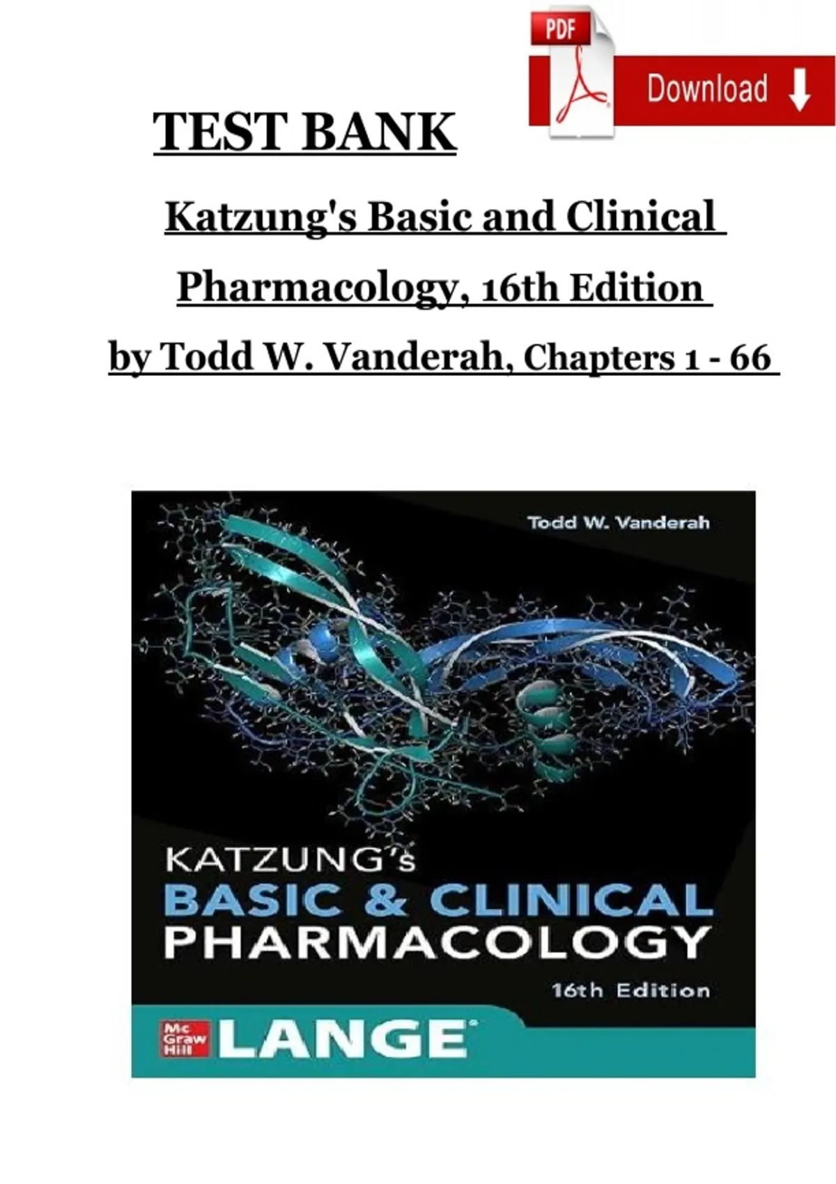 Test Bank for Katzung’s Basic and Clinical Pharmacology, 16th Edition – 100% Accurate Answers | Exam Prep | Latest Update 2026 – Todd W. Vanderah