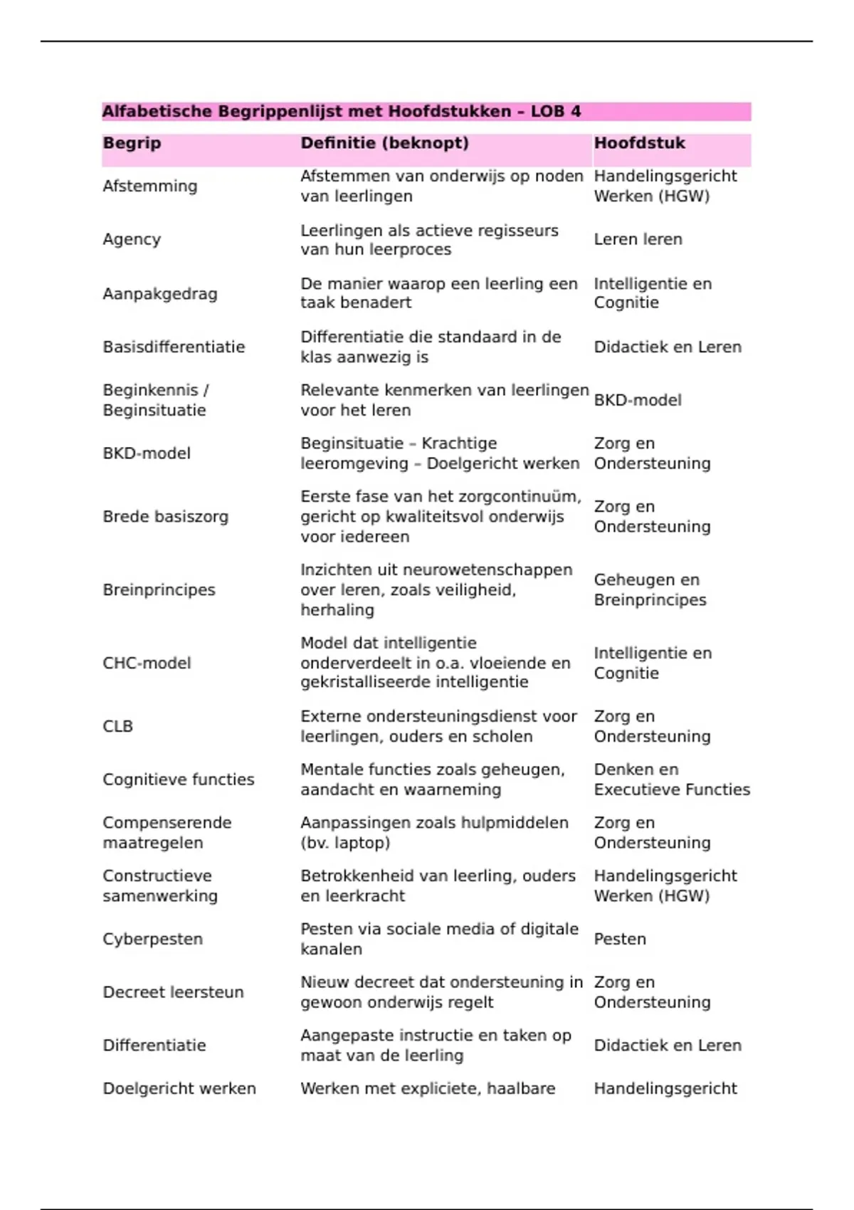 Begrip Definitie (beknopt) Hoofdstuk