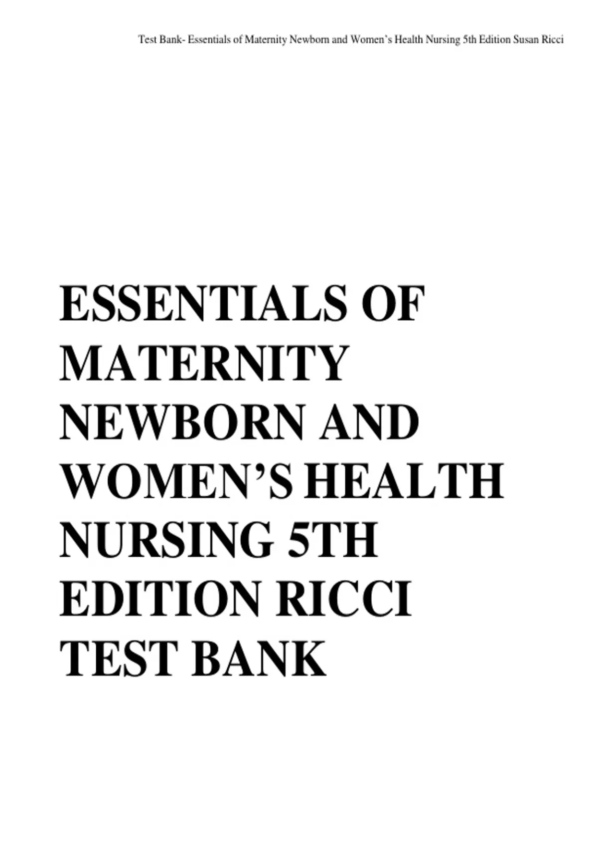 , Test Bank- Essentials of Maternity Newborn and Women’s Health Nursing 5th Edition Susan Ricci