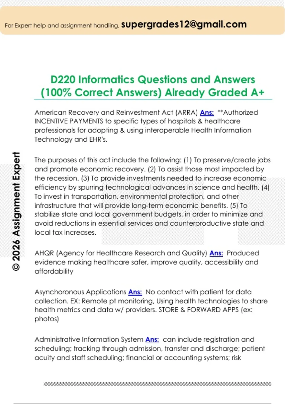 D220 Informatics Questions and Answers