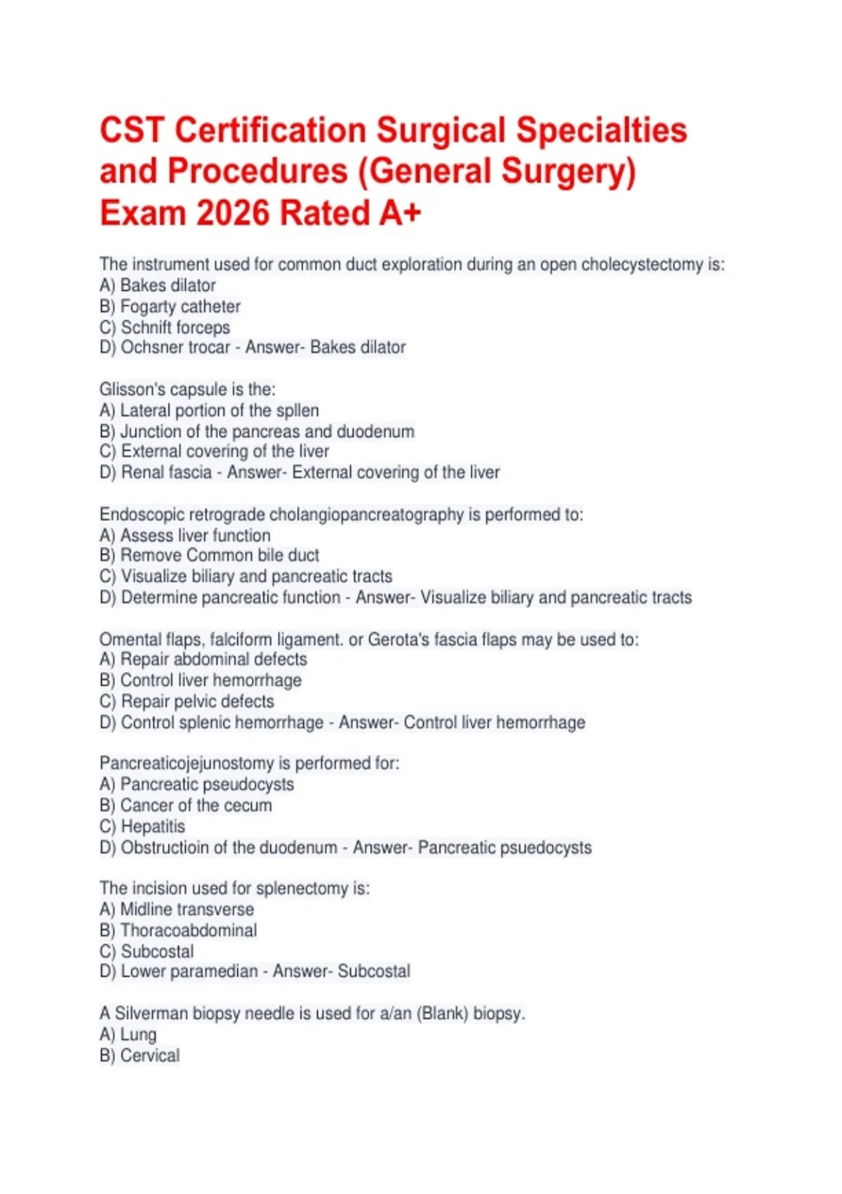 D) Ochsner trocar - Answer- Bakes dilator