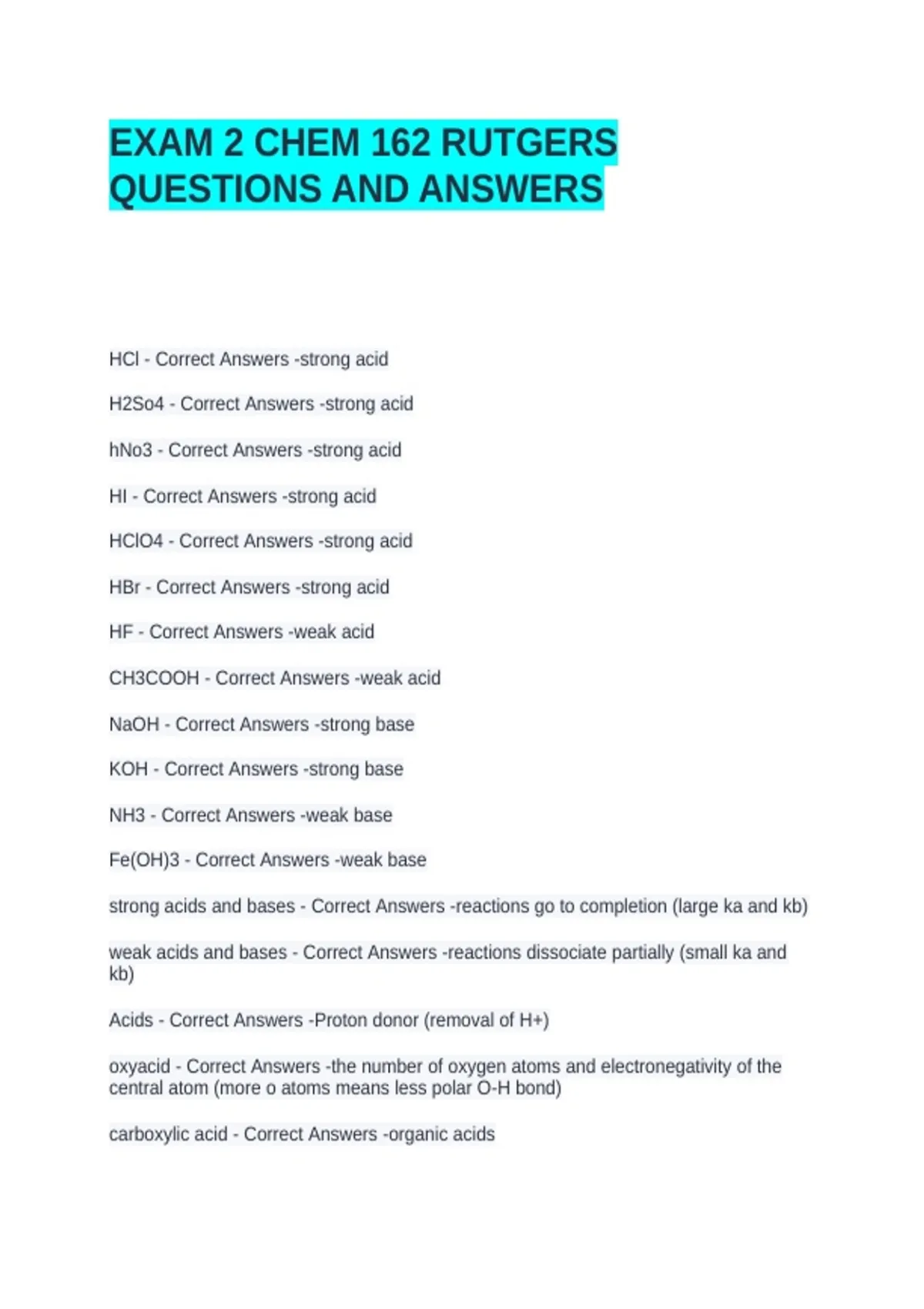 HBr - Correct Answers -strong acid