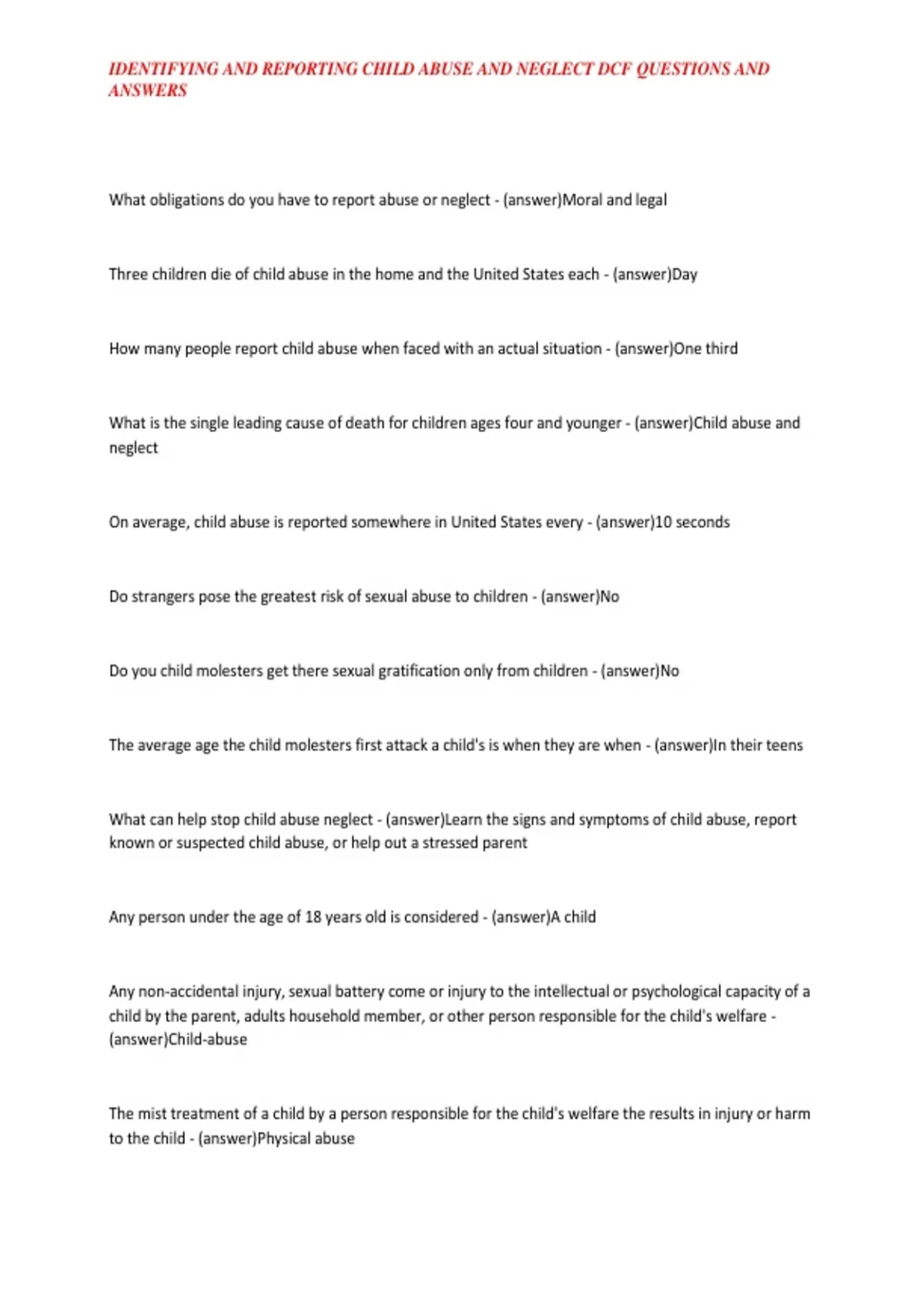 IDENTIFYING AND REPORTING CHILD ABUSE AND NEGLECT DCF QUESTIONS AND ANSWERS