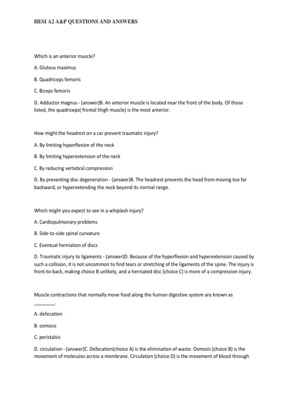 HESI A2 A&P QUESTIONS AND ANSWERS