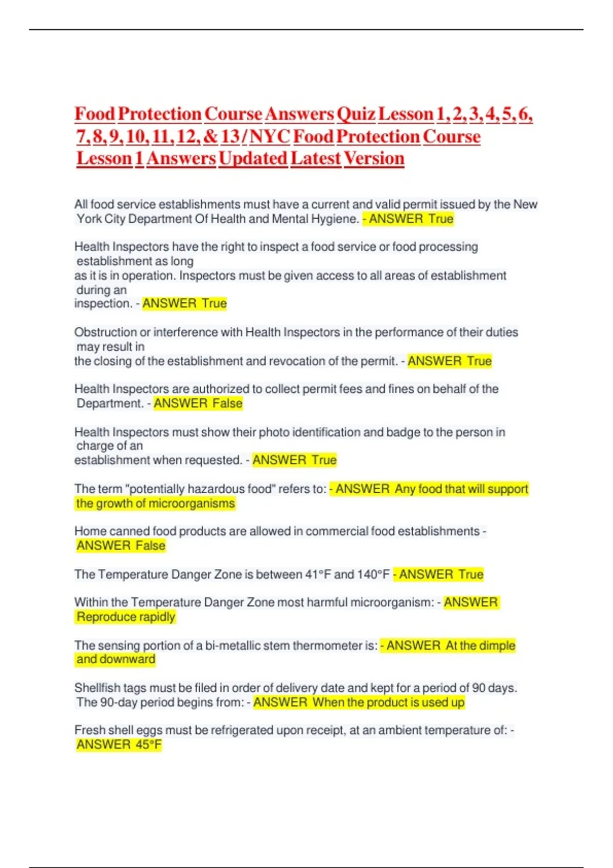 Lesson 1 Answers Updated Latest Version