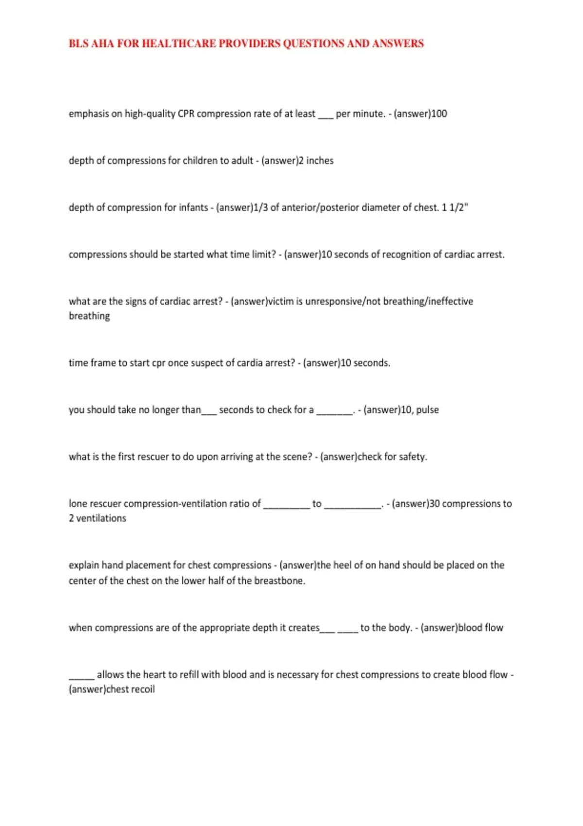 , BLS AHA FOR HEALTHCARE PROVIDERS QUESTIONS AND ANSWERS