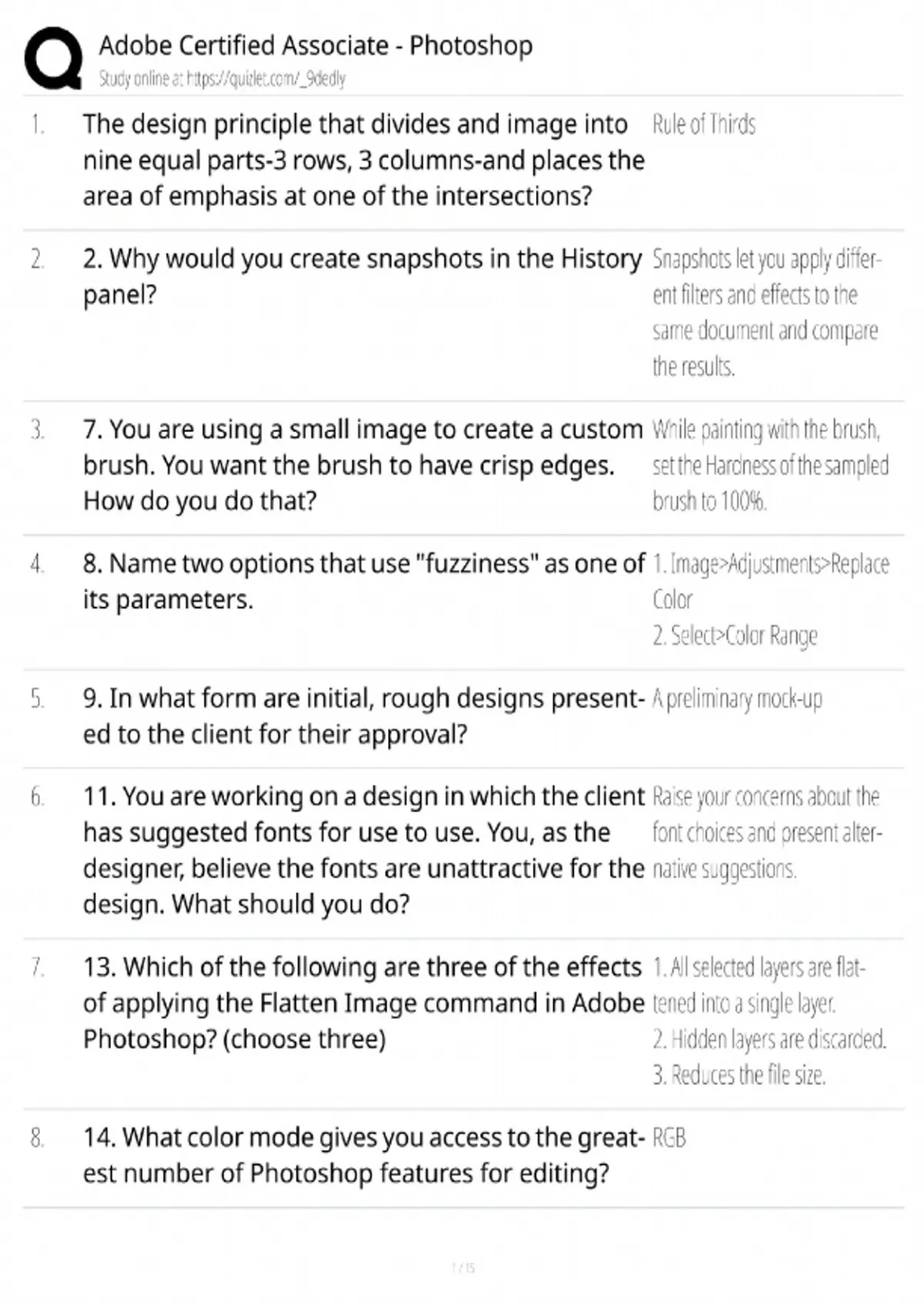 Adobe Certified Associate (ACA) - Photoshop / Exam Study Guide / New Version 2025 / Score 100%