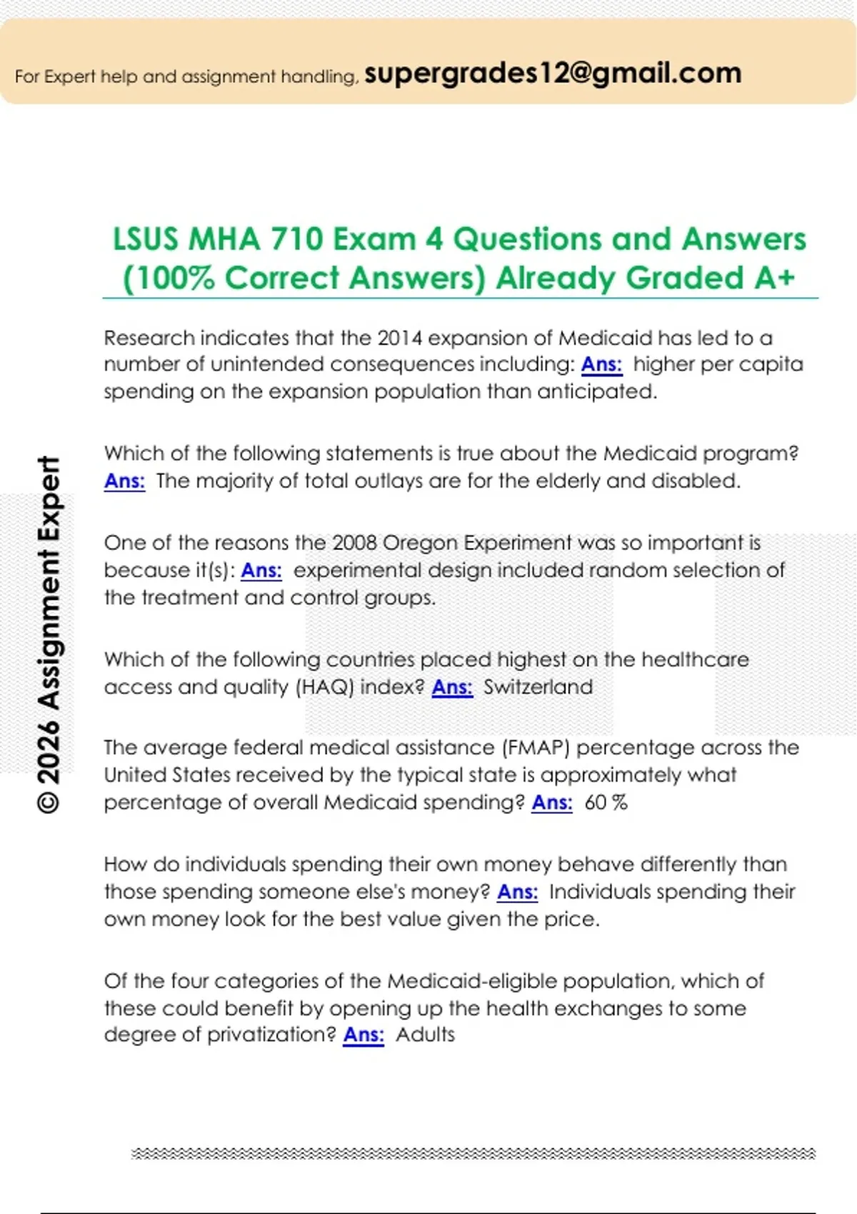LSUS MHA 710 Exam 4 Questions and Answers (100% Correct Answers) Already Graded A+
