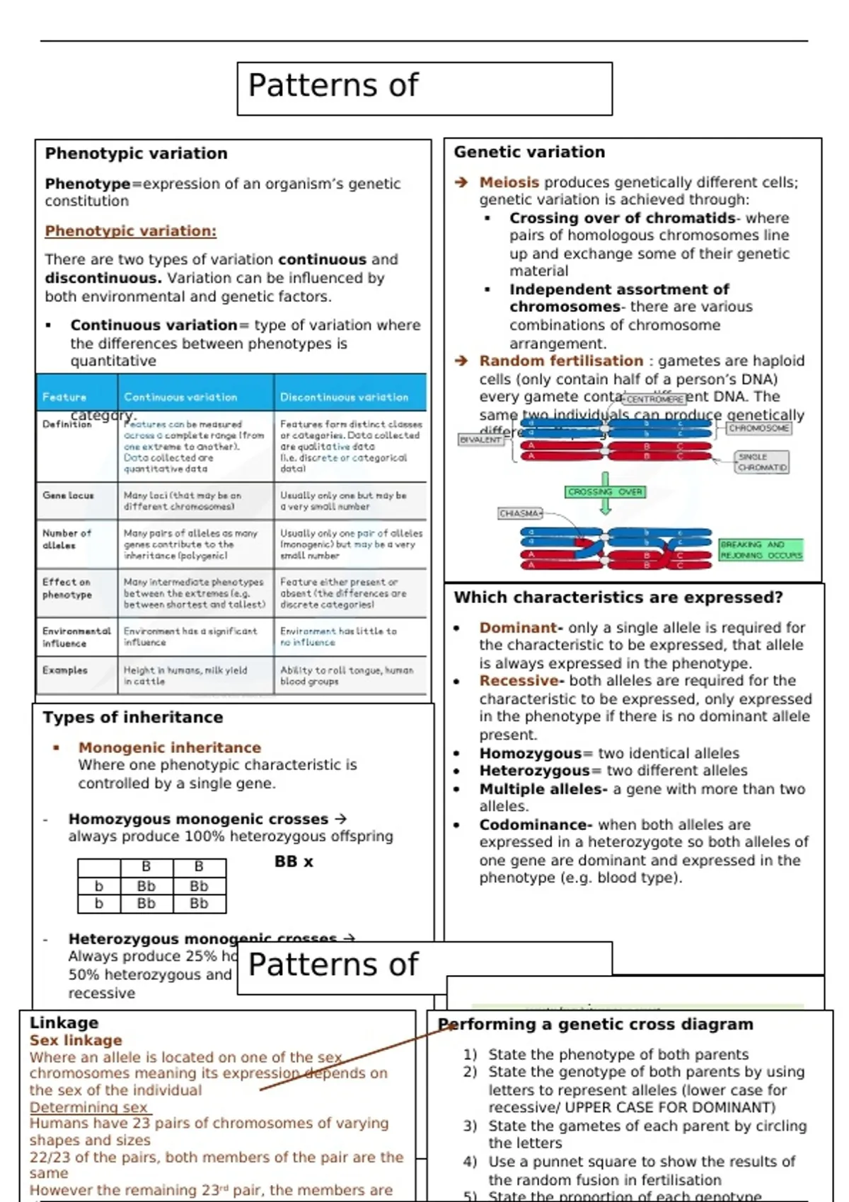 Summary Unit 7- genetics, populations, ecosystems, control of gene expression (patterns of inheritance)