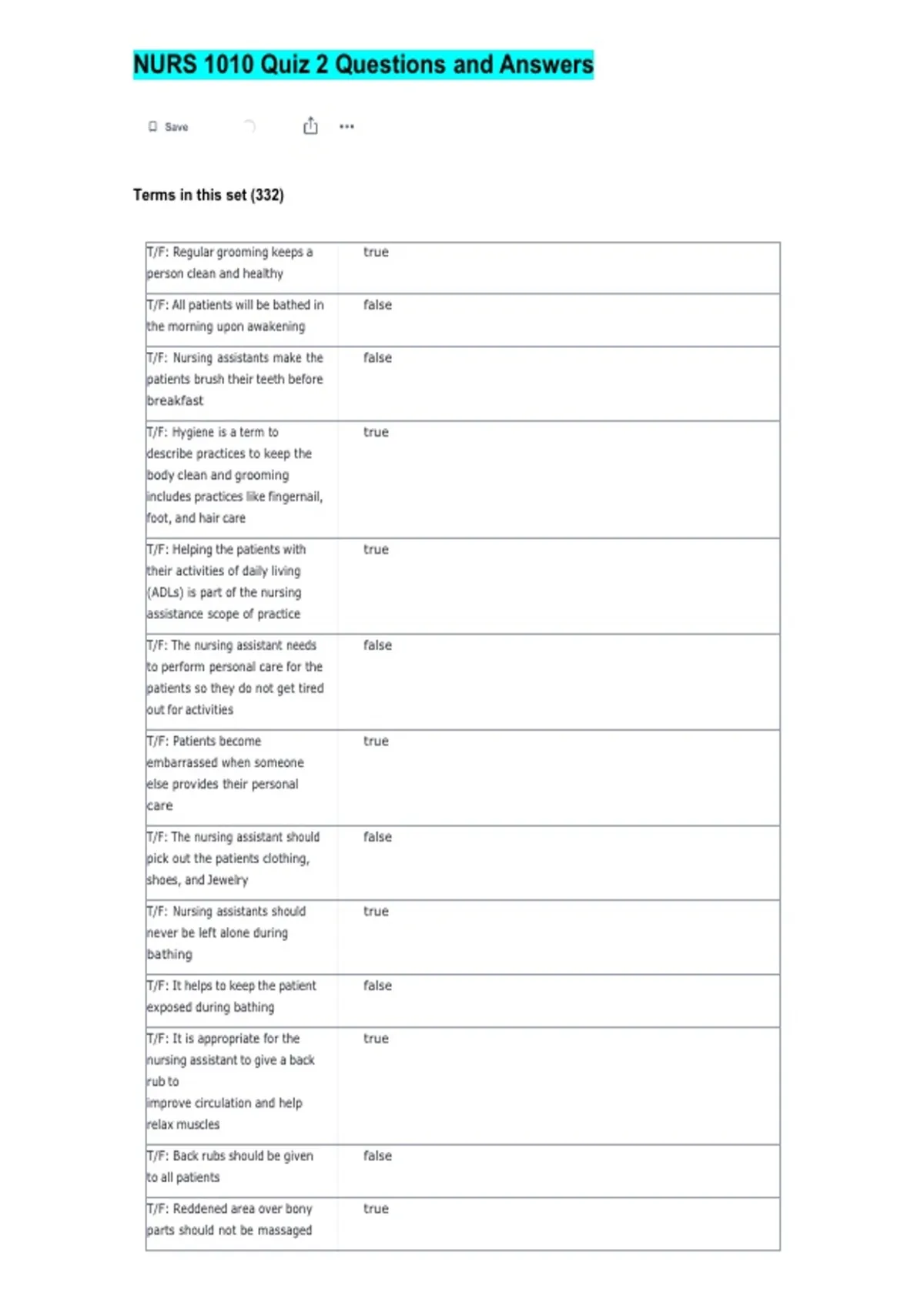 T/F: Nursing assistants should true