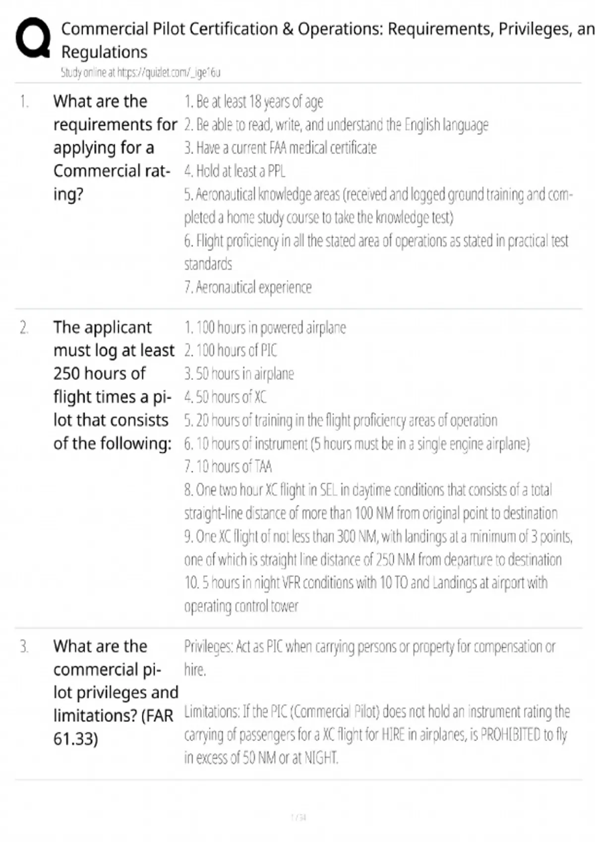 Commercial Pilot Certification / Operations, Privileges & Regulations / Complete Study Guide 2025 / Score 100%