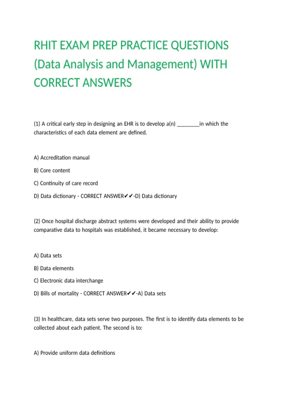 RHIT EXAM PREP PRACTICE QUESTIONS