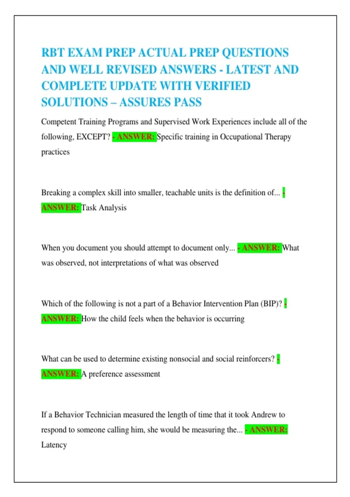 AND WELL REVISED ANSWERS - LATEST AND
