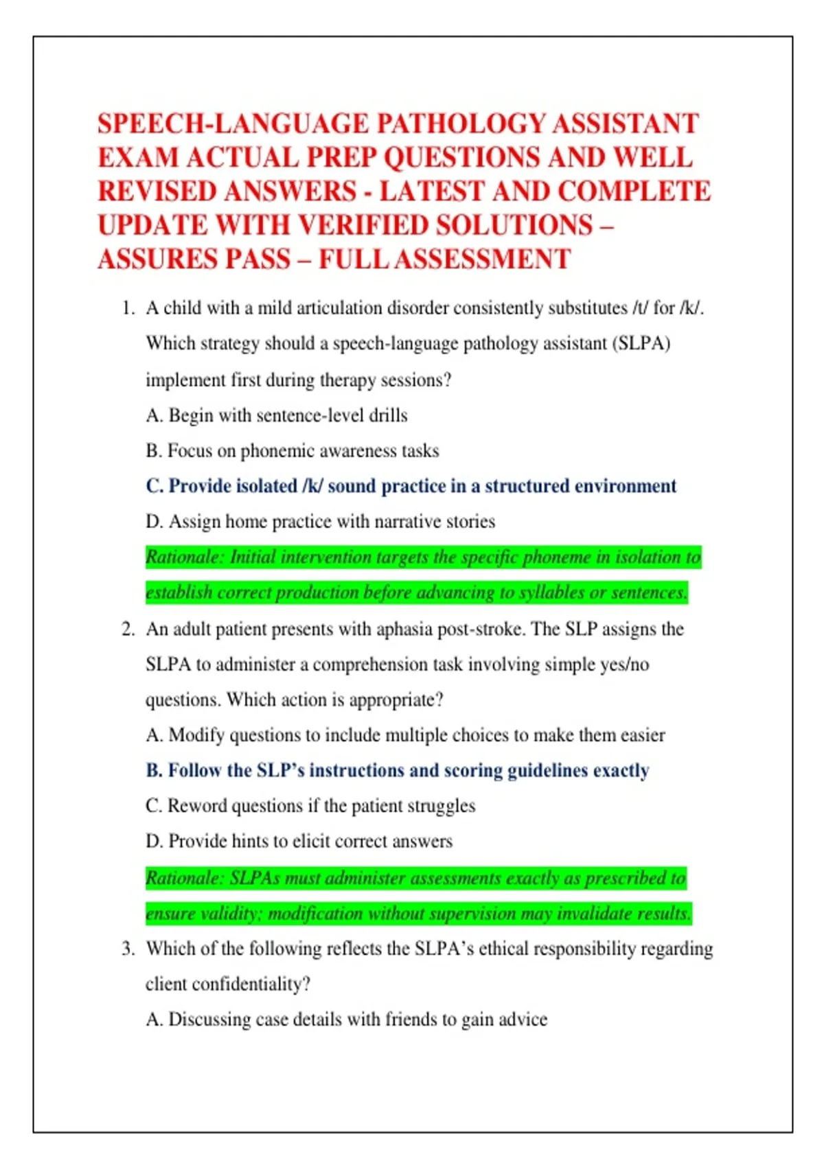 Rationale: SLPAs must administer assessments exactly as prescribed to