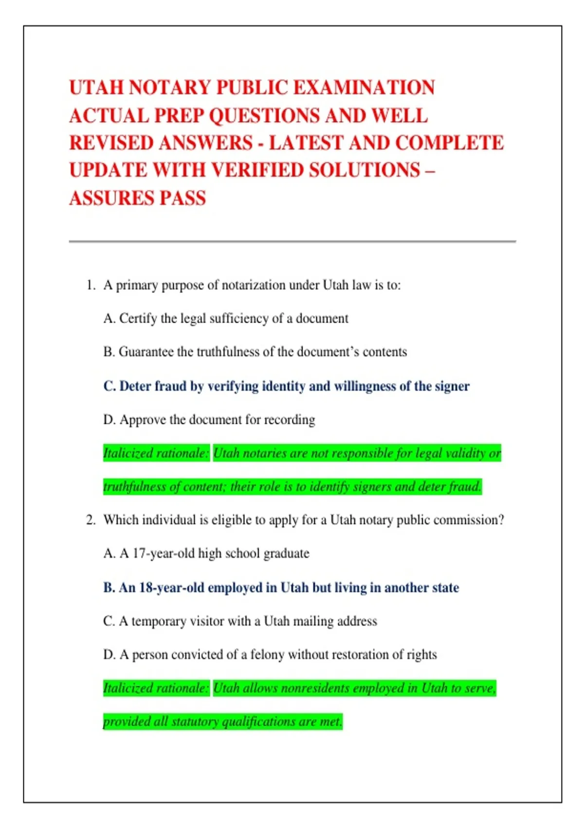 Italicized rationale: Utah notaries are not responsible for legal validity or
