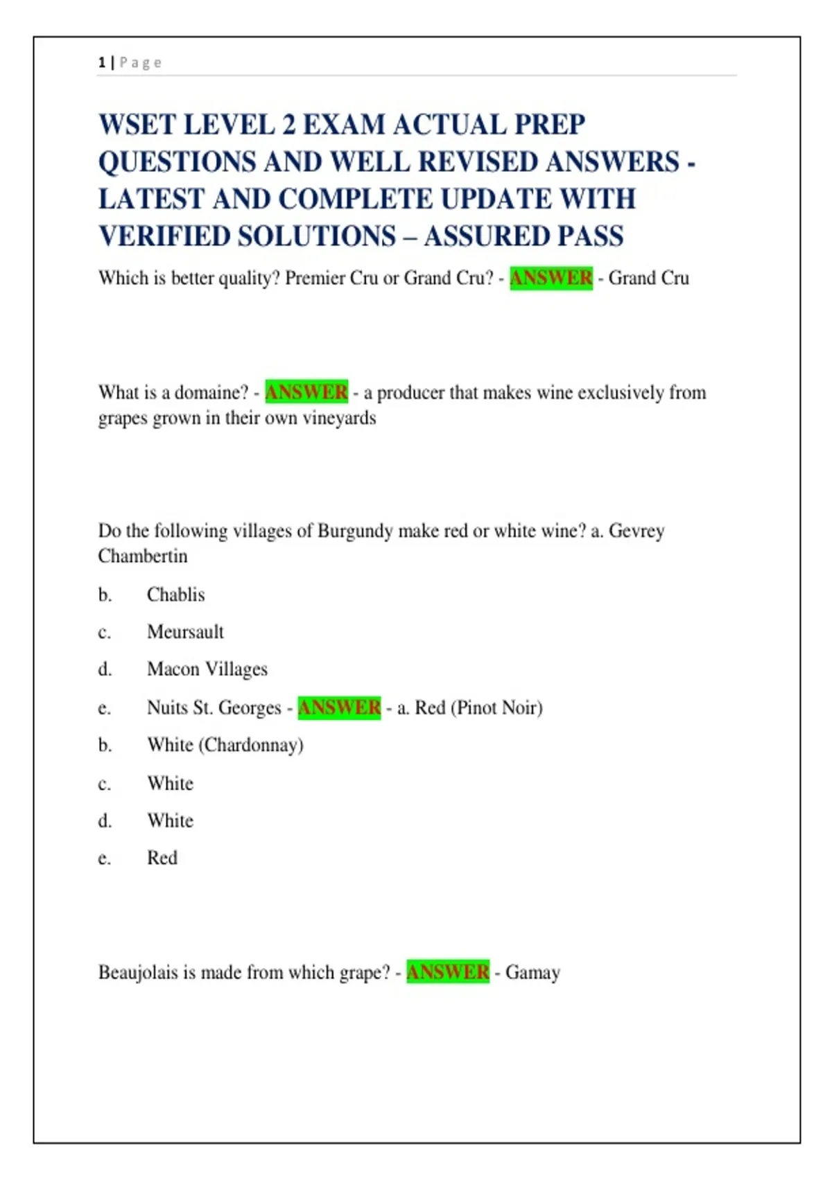 quality. - ANSWER - 1. Beaujolais Crus (10 famous villages such as Morgon and