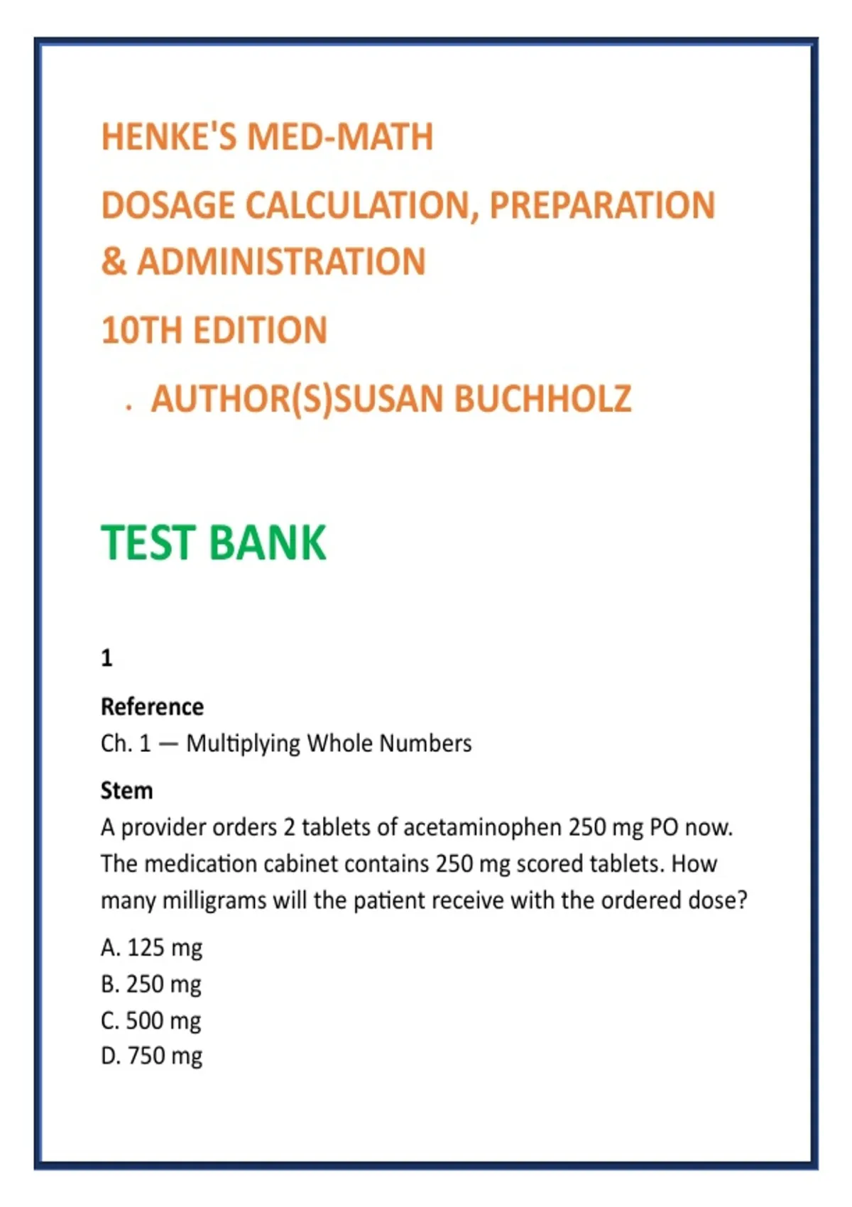 Buchholz, S. (2024). Henke’s Med-Math: Dosage Calculation,